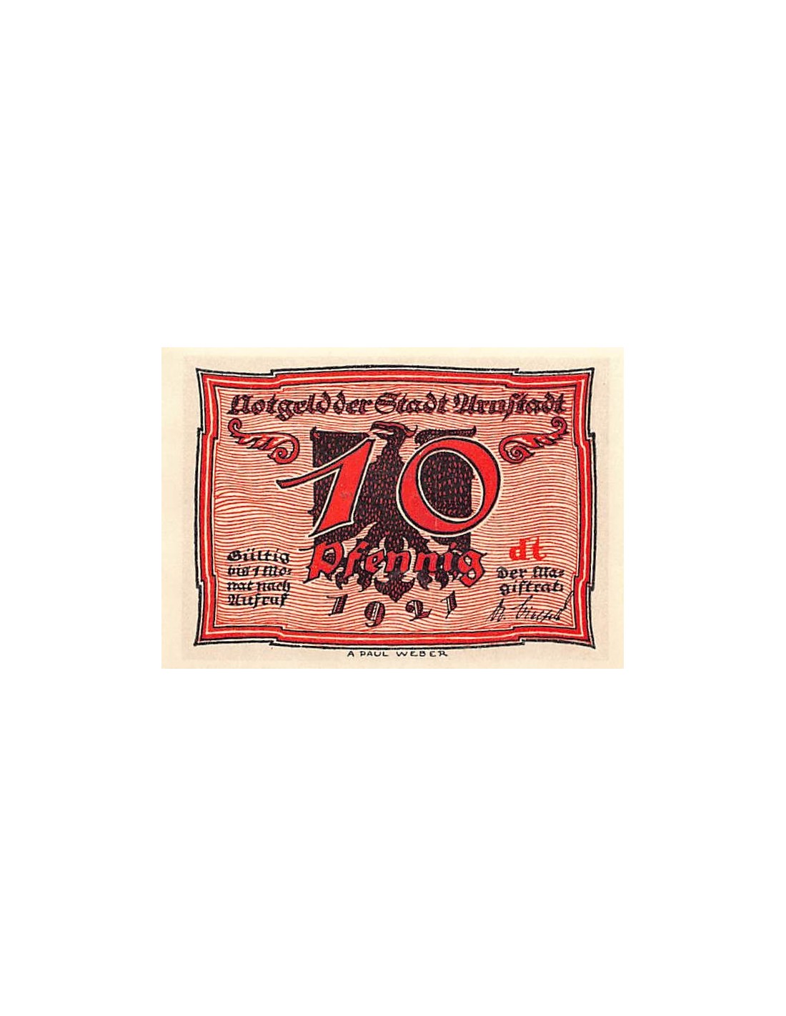 ALLEMAGNE, ARNSTADT - 10 PFENNIG 1921