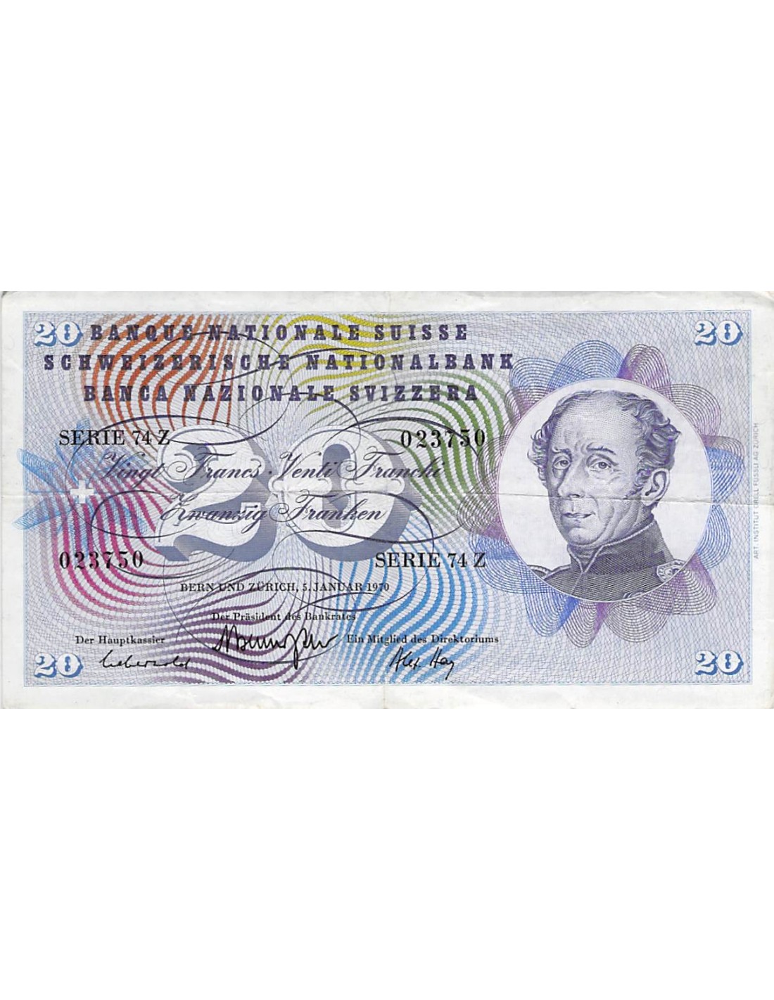 SUISSE, GENERAL DUFOUR - 20 FRANCS 05/01/1970 - TB+