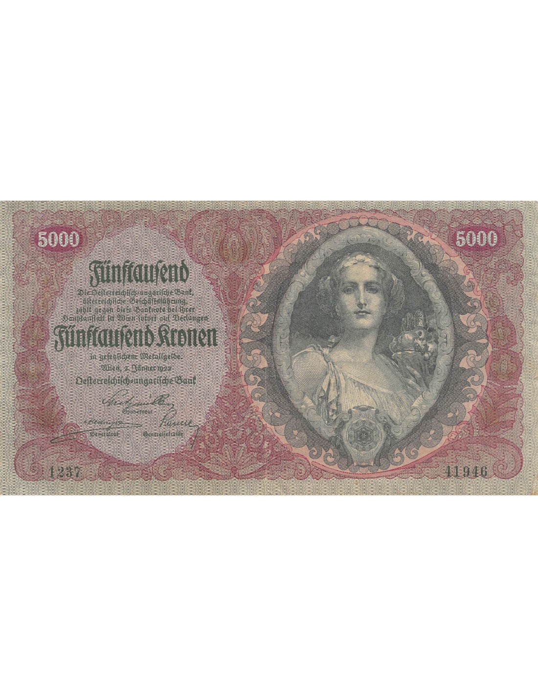 AUTRICHE - 5000 KRONEN 02/01/1922 - TTB+