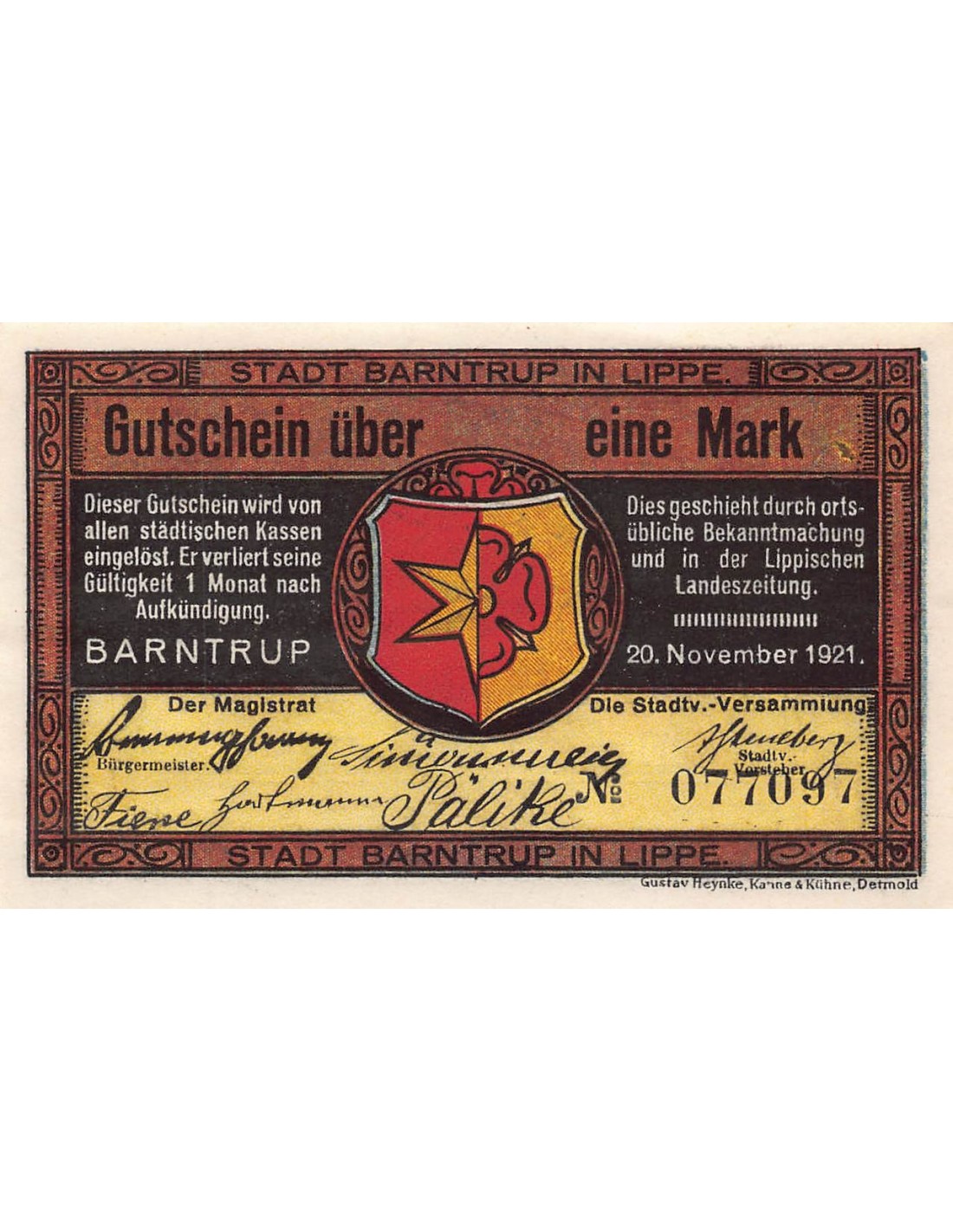 ALLEMAGNE, BARNTRUP IN LIPPE - 1 MARK 1921