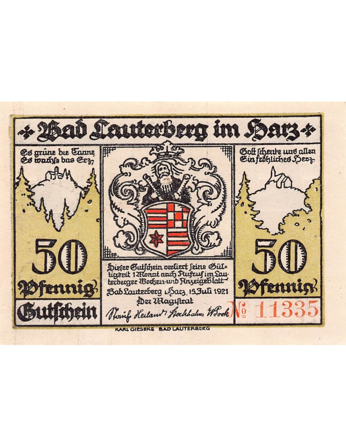 ALLEMAGNE, LAUTERBERG IM HARZ - 50 PFENNIG 1921