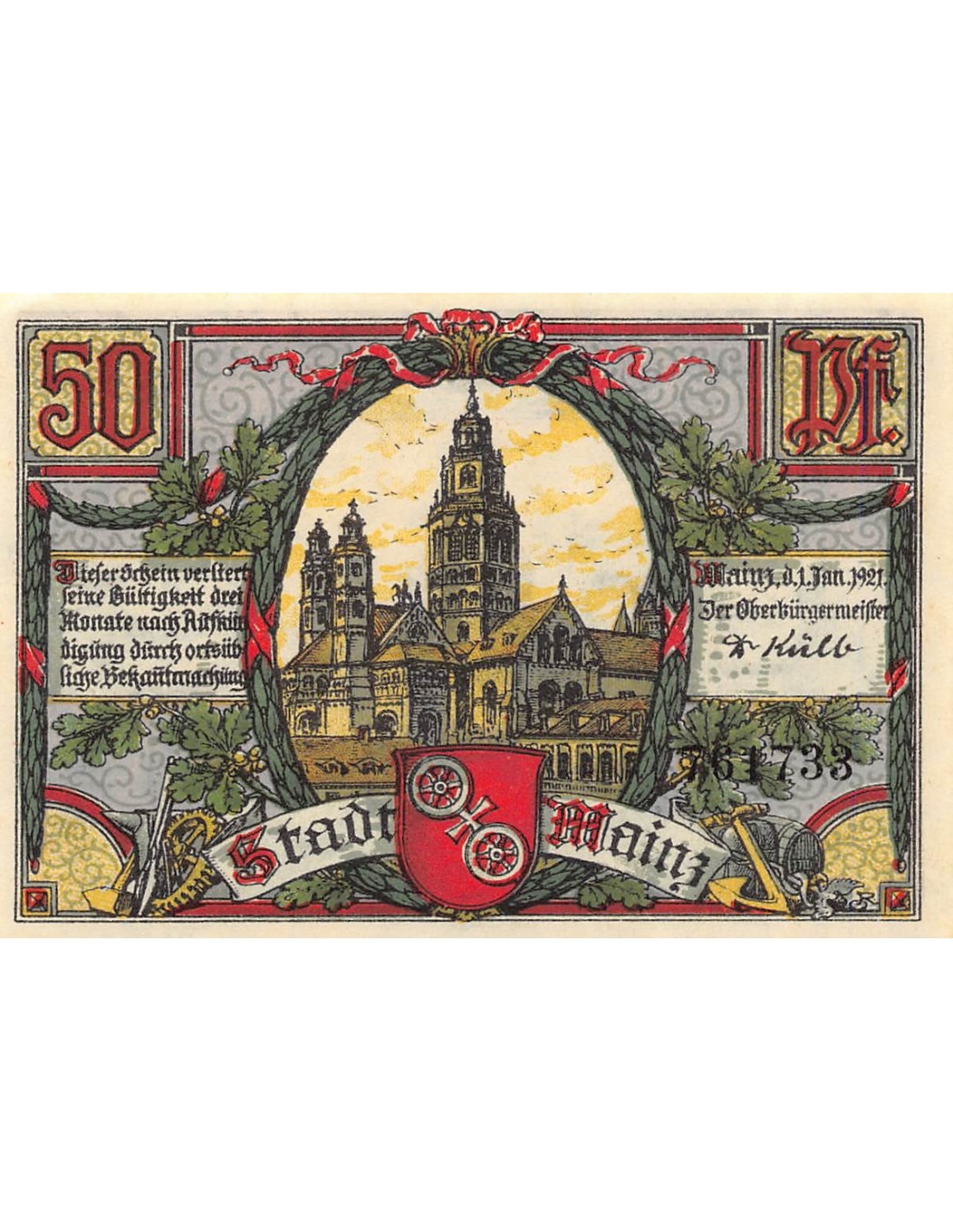ALLEMAGNE, MAINZ - 50 PFENNIG 1921