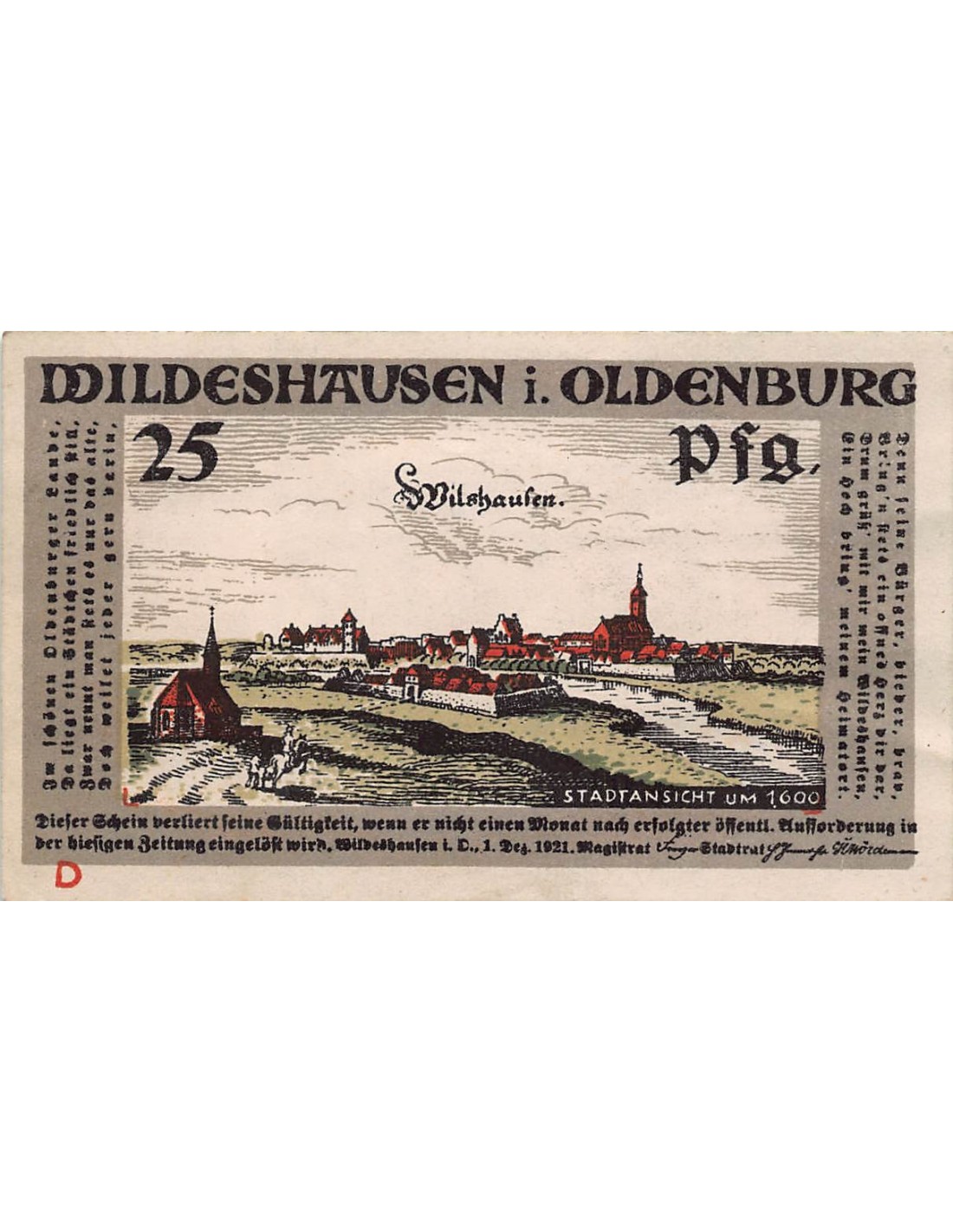 ALLEMAGNE, WILDESHAUSEN - 25 PFENNIG 1921