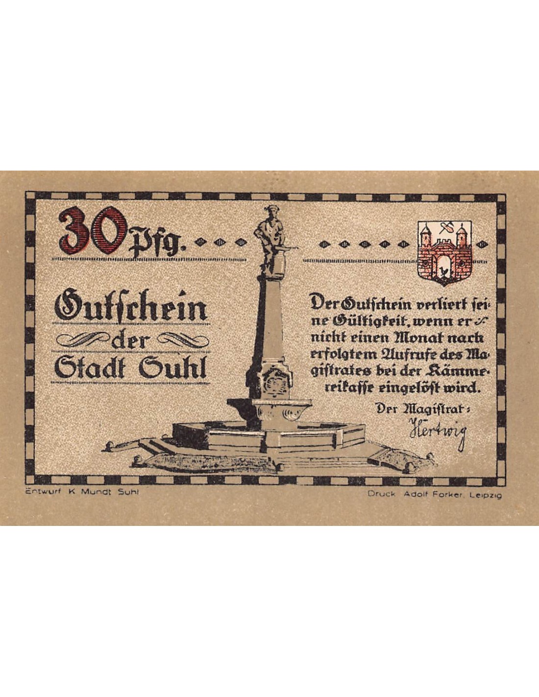 ALLEMAGNE, SUHL - 30 PFENNIG