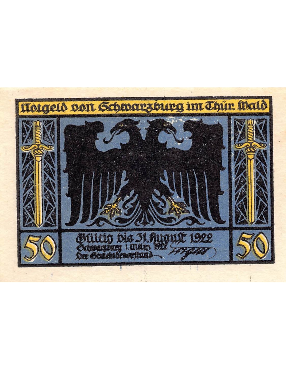 ALLEMAGNE, SCHWARZBURG - 50 PFENNIG 1922
