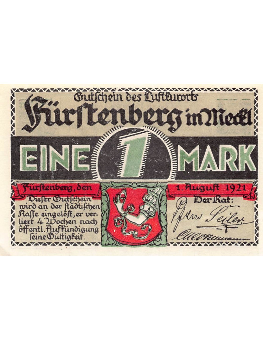 ALLEMAGNE, FÜRSTENBERG - 1 MARK 1921