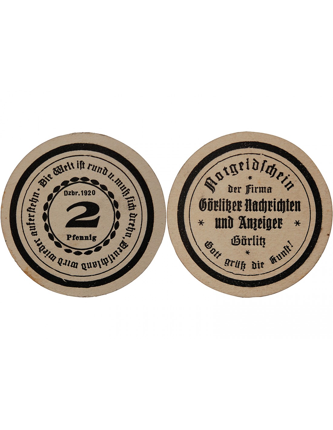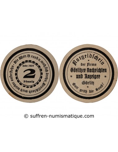 Allemagne ALLEMAGNE, GÖRLITZ - 2 PFENNIG 1920