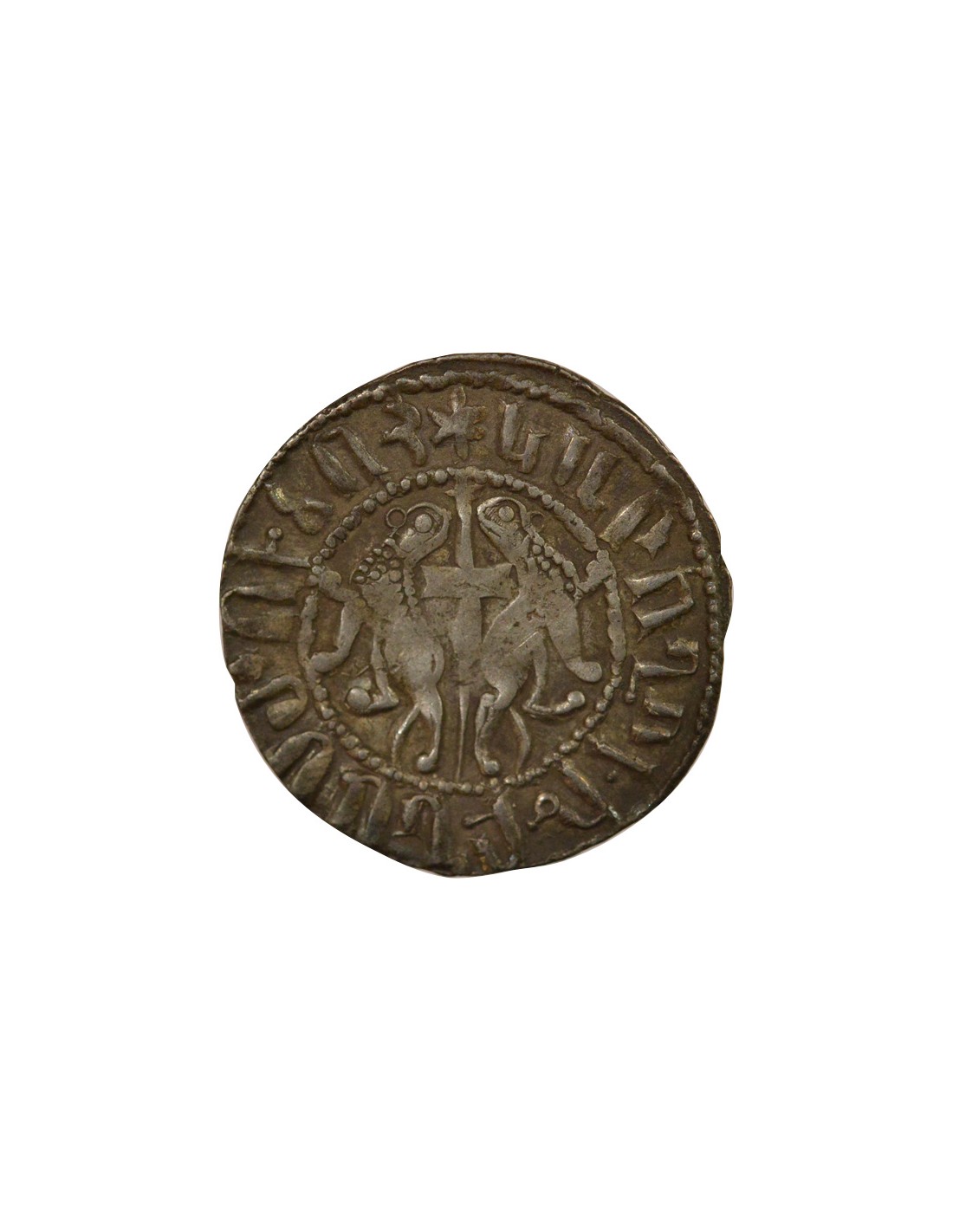 Cette pièce est un Tram d'argent frappée sous le règne de Léon Ier en Arménie, probablement à Sis, entre 1198 et 1219. La date d'émission de cette pièce est 1271.