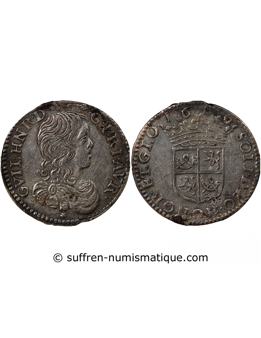 "PRINCIPAUTE D'ORANGE, GUILLAUME HENRI DE NASSAU - 1/10 ECU 1666 ARGENT