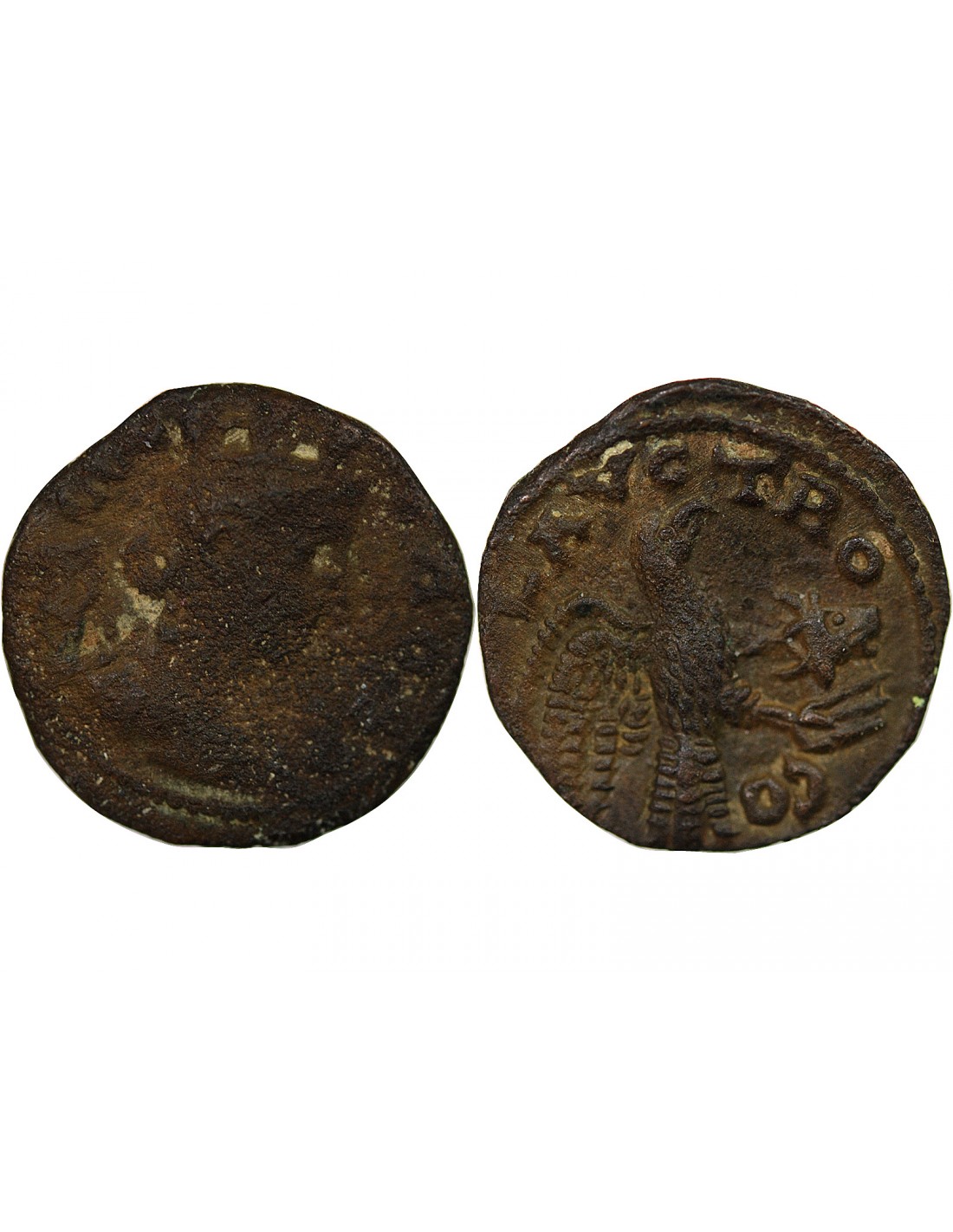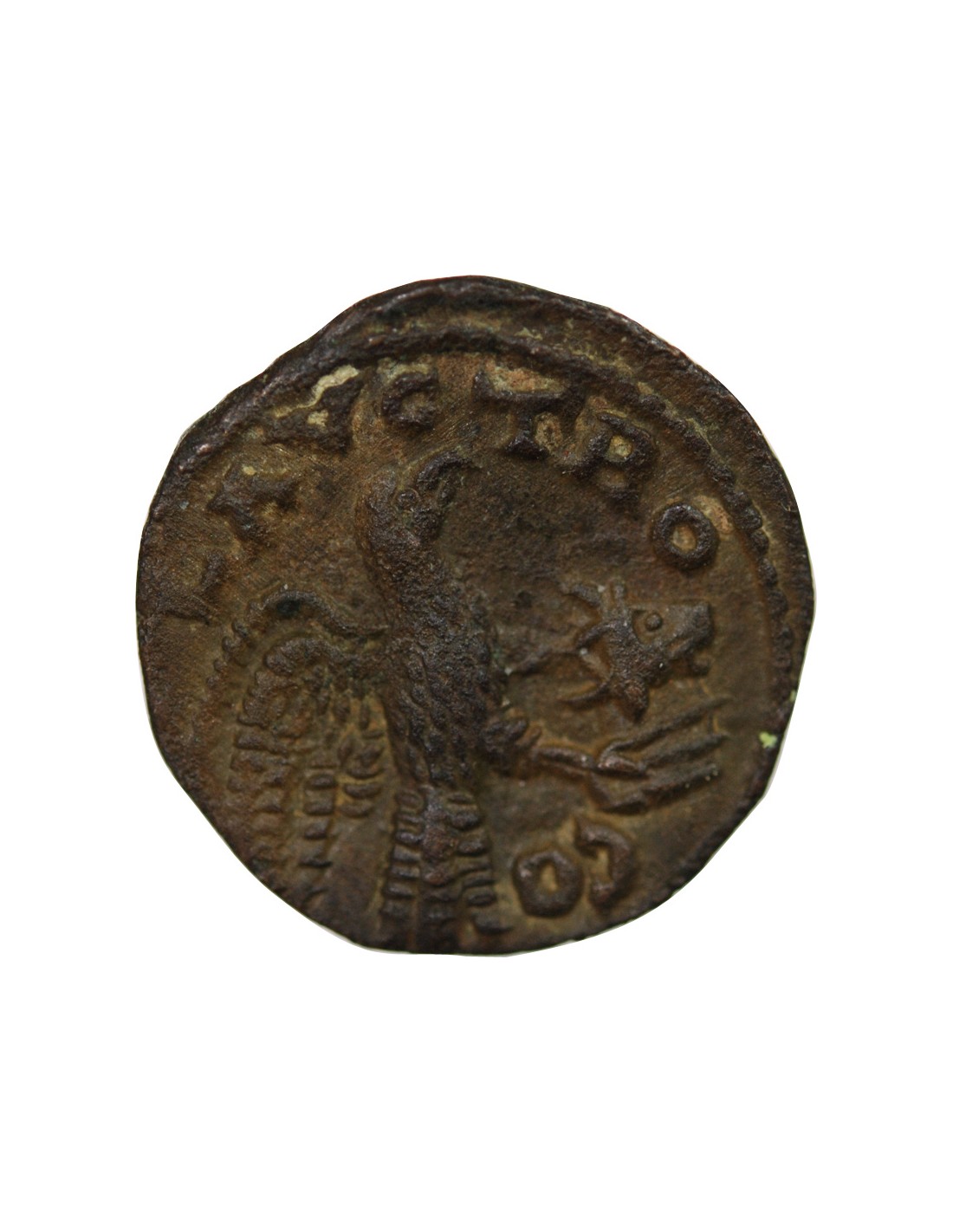 Revers : Aigle volant à droite tenant entre ses serres un protomé de taureau. COL AVG TRO
