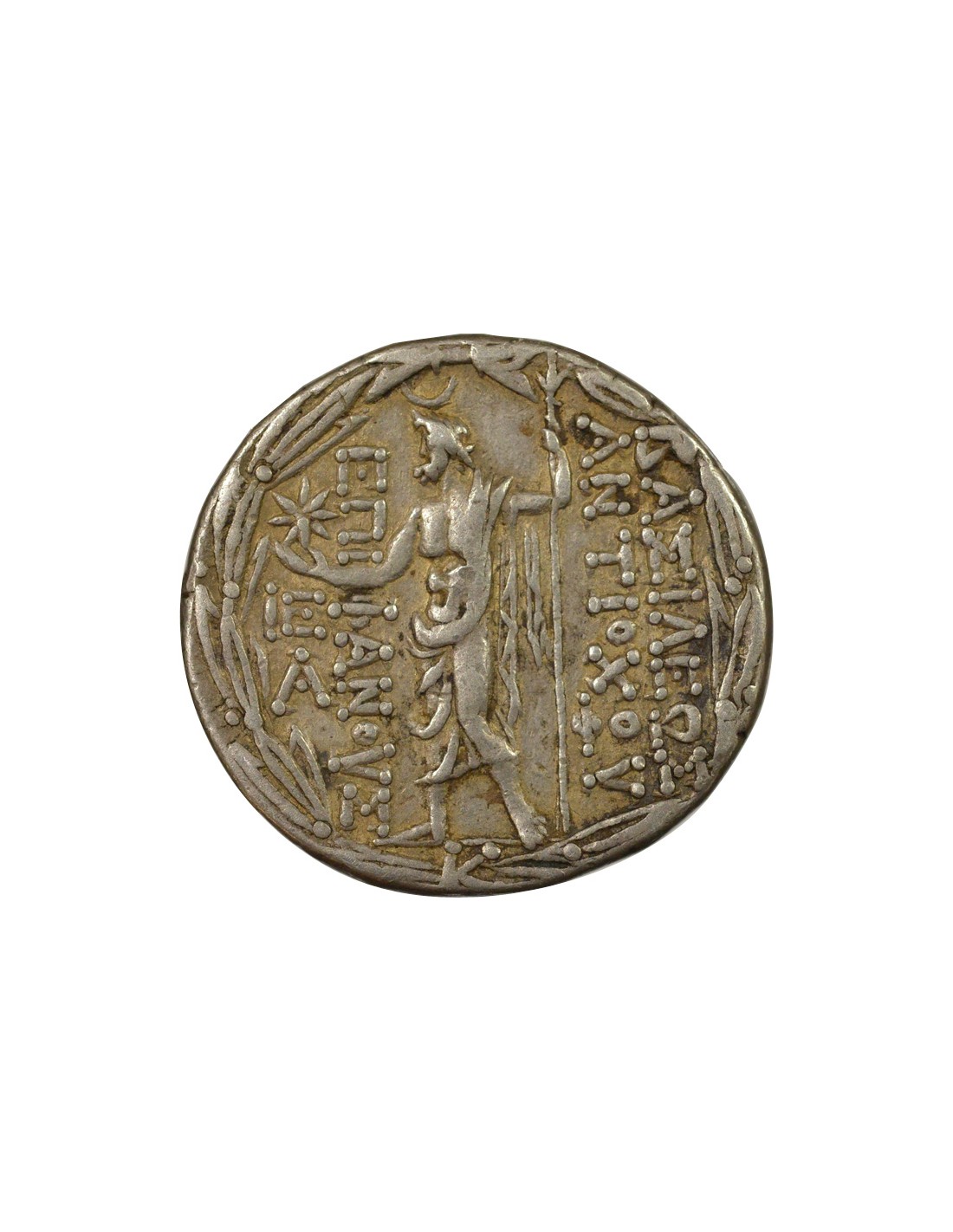 Le règne d’Antiochos VIII, surnommé « Gryphos » en raison de son nez proéminent, s’inscrit dans une période de déclin avancé de l’empire séleucide. Fils de Démétrios II Nikator et de Cléopâtre Théa, il accède au trône dans un contexte de guerres civiles incessantes et de luttes dynastiques fratricides qui fragmentent progressivement le territoire syrien. Son gouvernement est marqué par une instabilité politique chronique, notamment due à sa rivalité avec son demi-frère Antiochos IX Cyzicène, ce qui fragilise considérablement l’autorité centrale face aux puissances régionales émergentes.