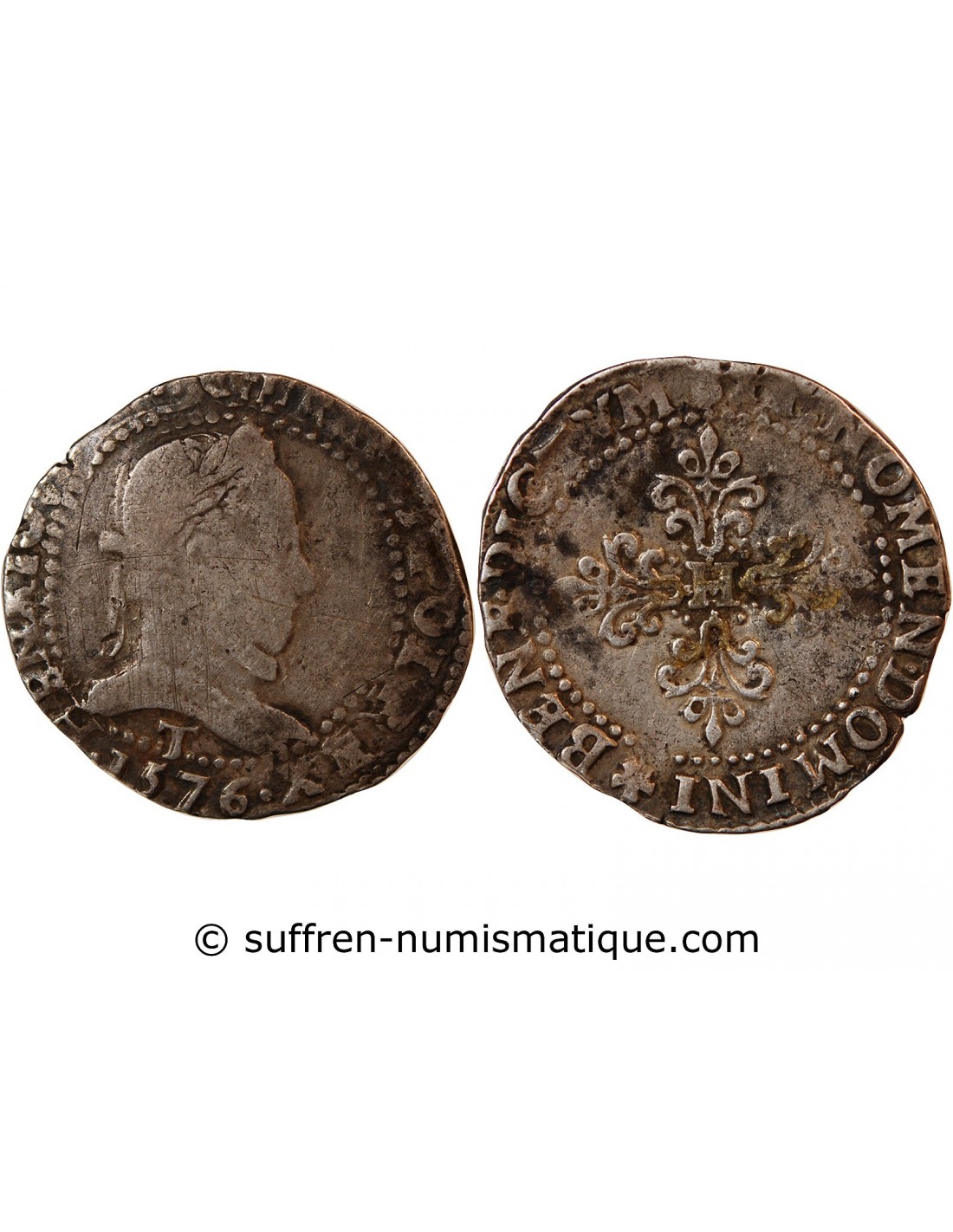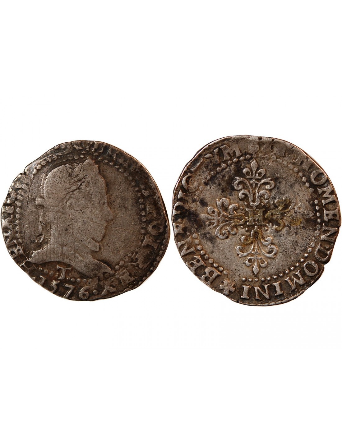 France HENRI III - 1/2 FRANC AU COL PLAT 1576 T NANTES