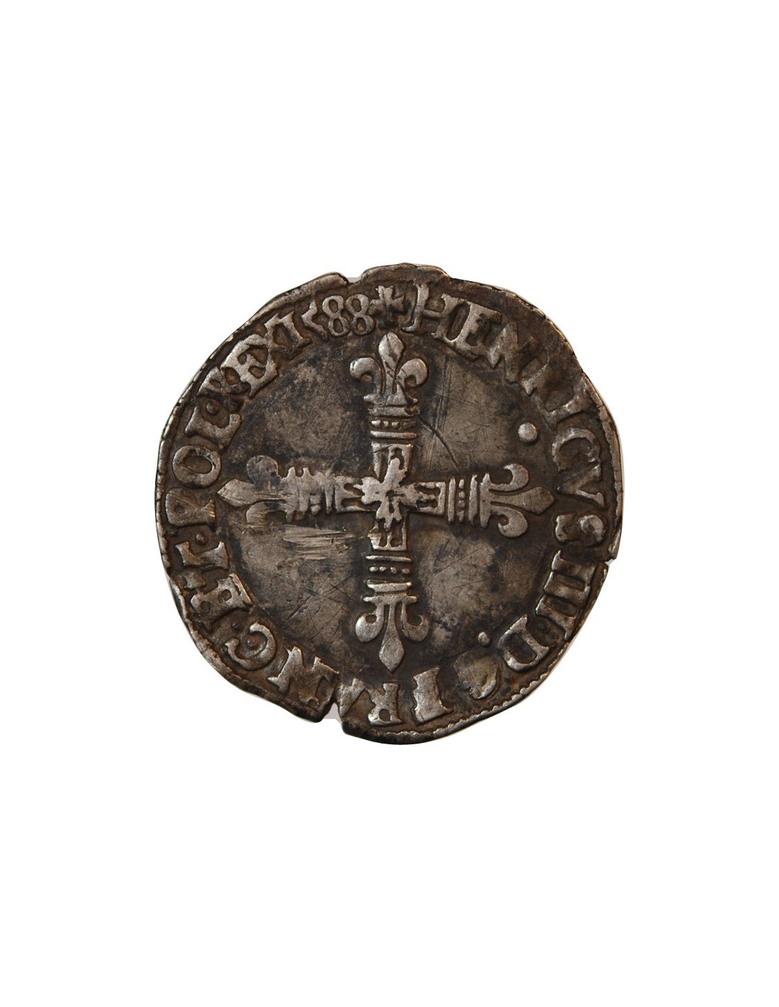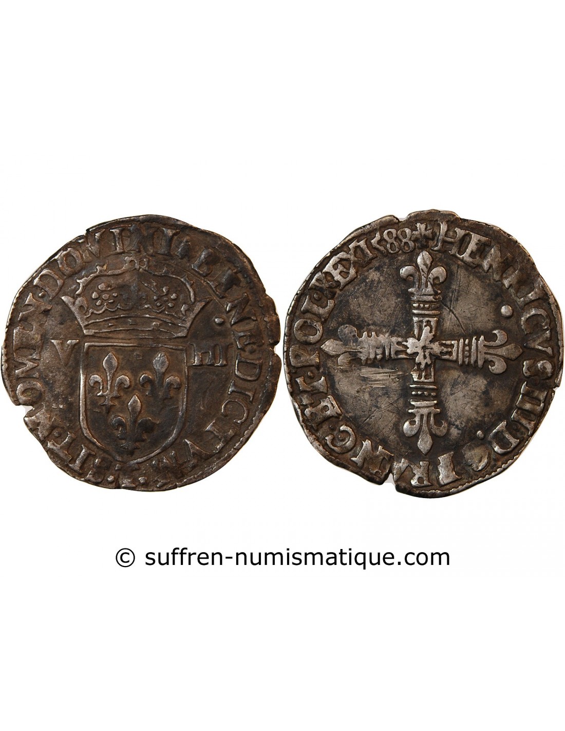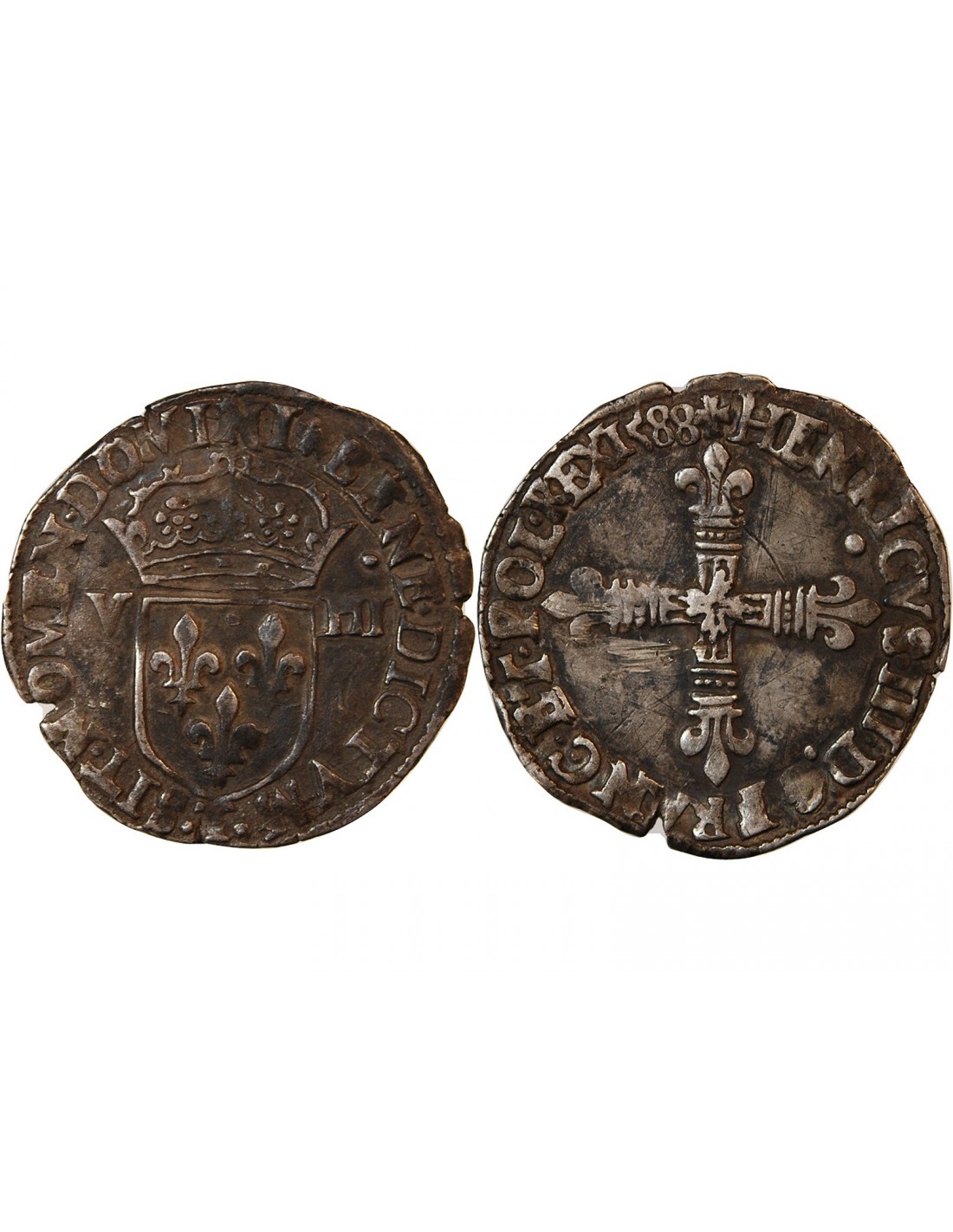 HENRI III - 1/8 ECU ARGENT 1588 T NANTES