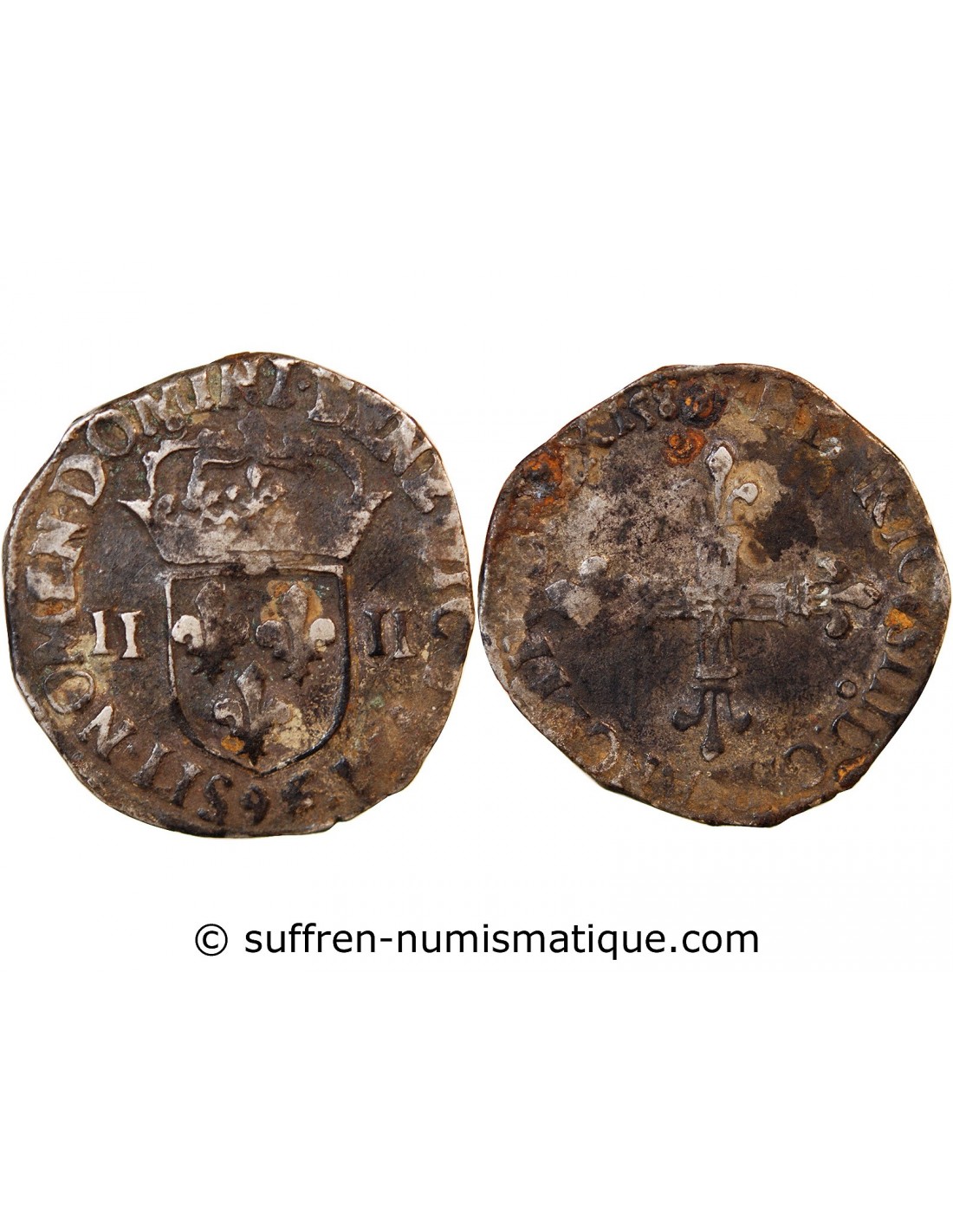 HENRI III - 1/4 ECU ARGENT 1589 9 RENNES