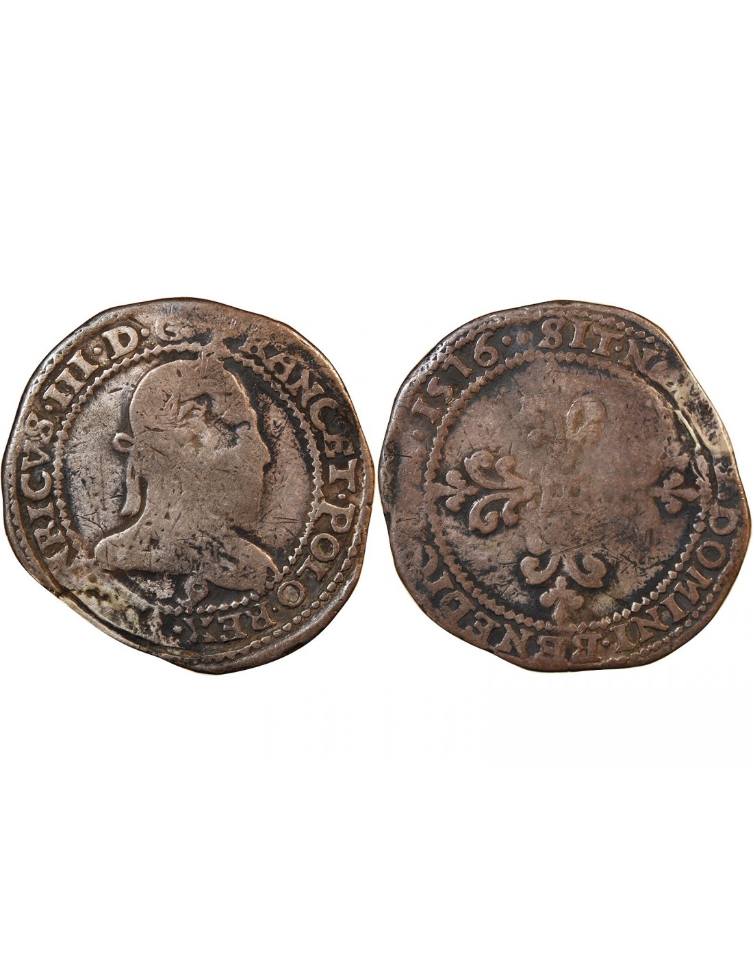 HENRI III - FRANC "Au Col Plat" ARGENT 1576 9 RENNES