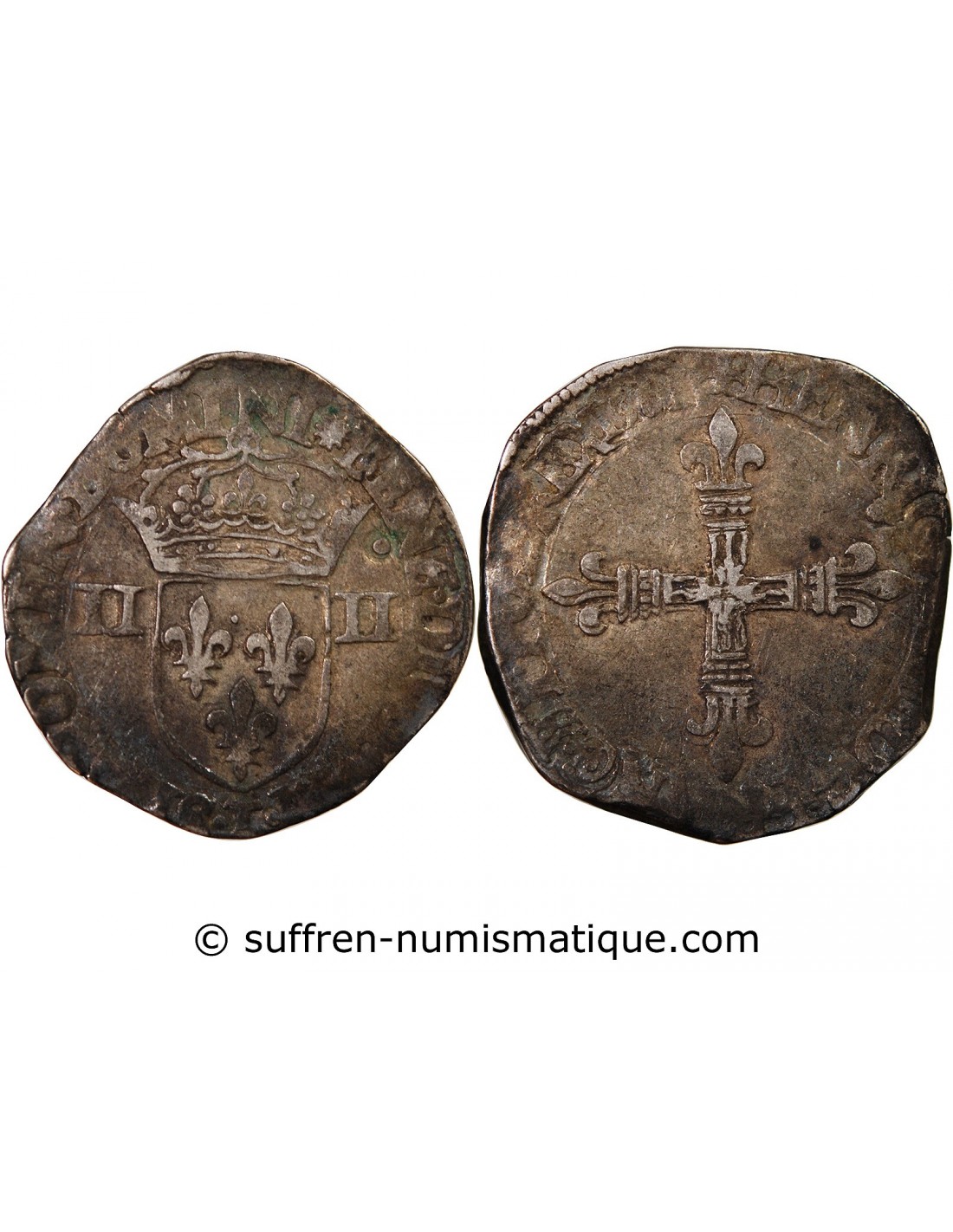 HENRI III - 1/4 ECU ARGENT 1581 T NANTES