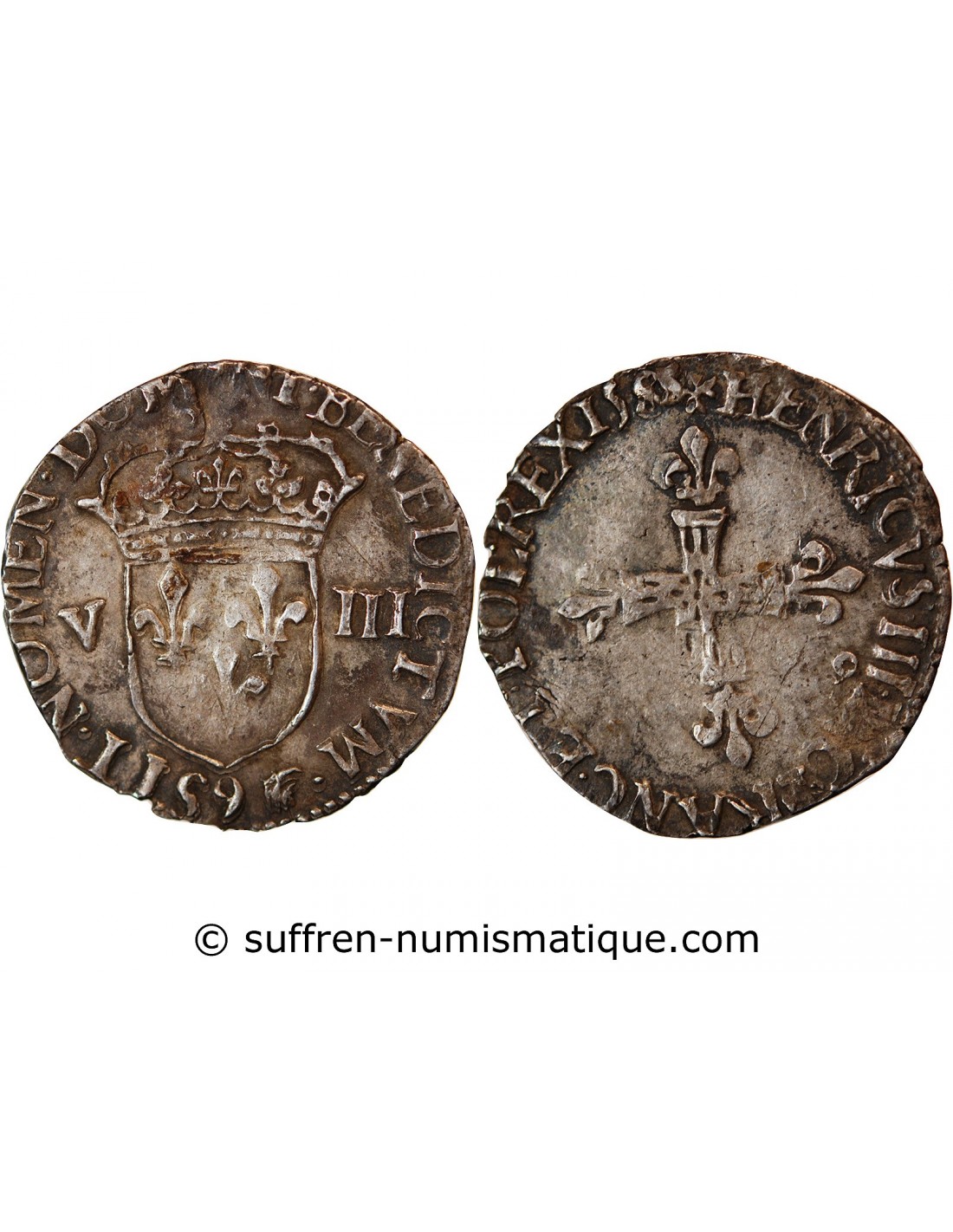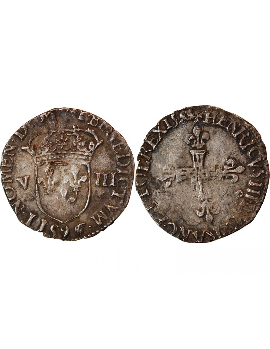 HENRI III - 1/8 ECU ARGENT 1588 9 RENNES