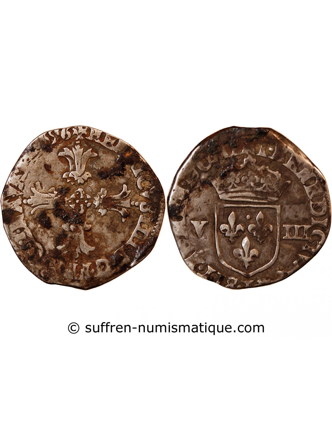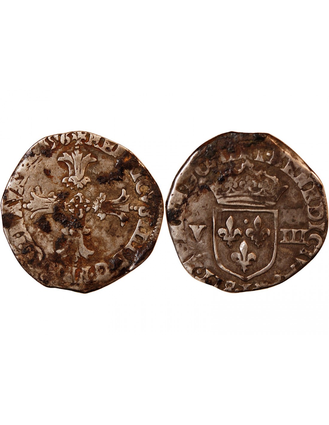 HENRI IV - 1/8 ECU ARGENT 1596 ATELIER INDETERMINE - Croix bâtonnée de face