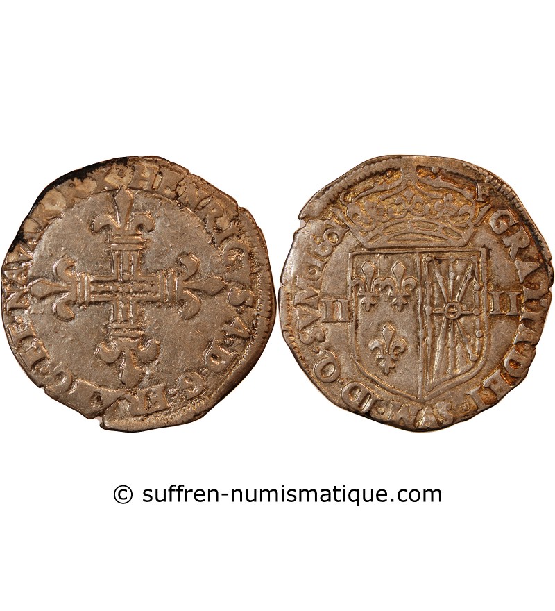 HENRI IV - 1/4 ECU DE NAVARRE ARGENT 1601 SAINT-PALAIS