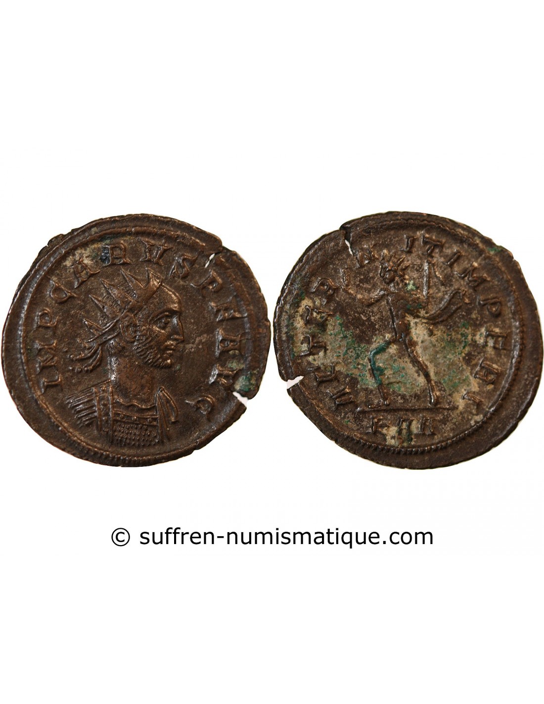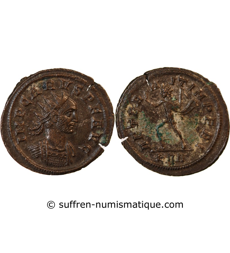 Carus est un empereur romain ayant régné environ 12 mois. Connu pour sa campagne militaire contre les Perses il serait meurt foudroyé après sa victoire. Certains auteurs interprètent ce décès comme une punition pour ne pas avoir respecté un oracle enjoignant à Carus de ne pas s'aventurer au-delà du Tibre.