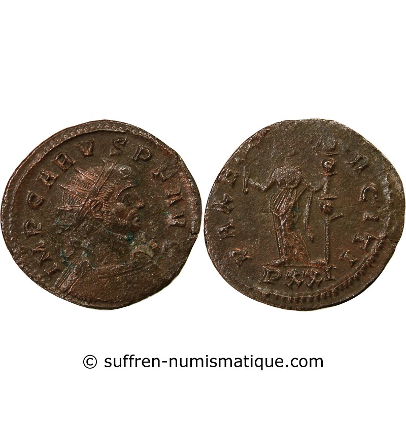 Carus est un empereur romain ayant régné environ 12 mois. Connu pour sa campagne militaire contre les Perses il serait meurt foudroyé après sa victoire. Certains auteurs interprètent ce décès comme une punition pour ne pas avoir respecté un oracle enjoignant à Carus de ne pas s'aventurer au-delà du Tibre.