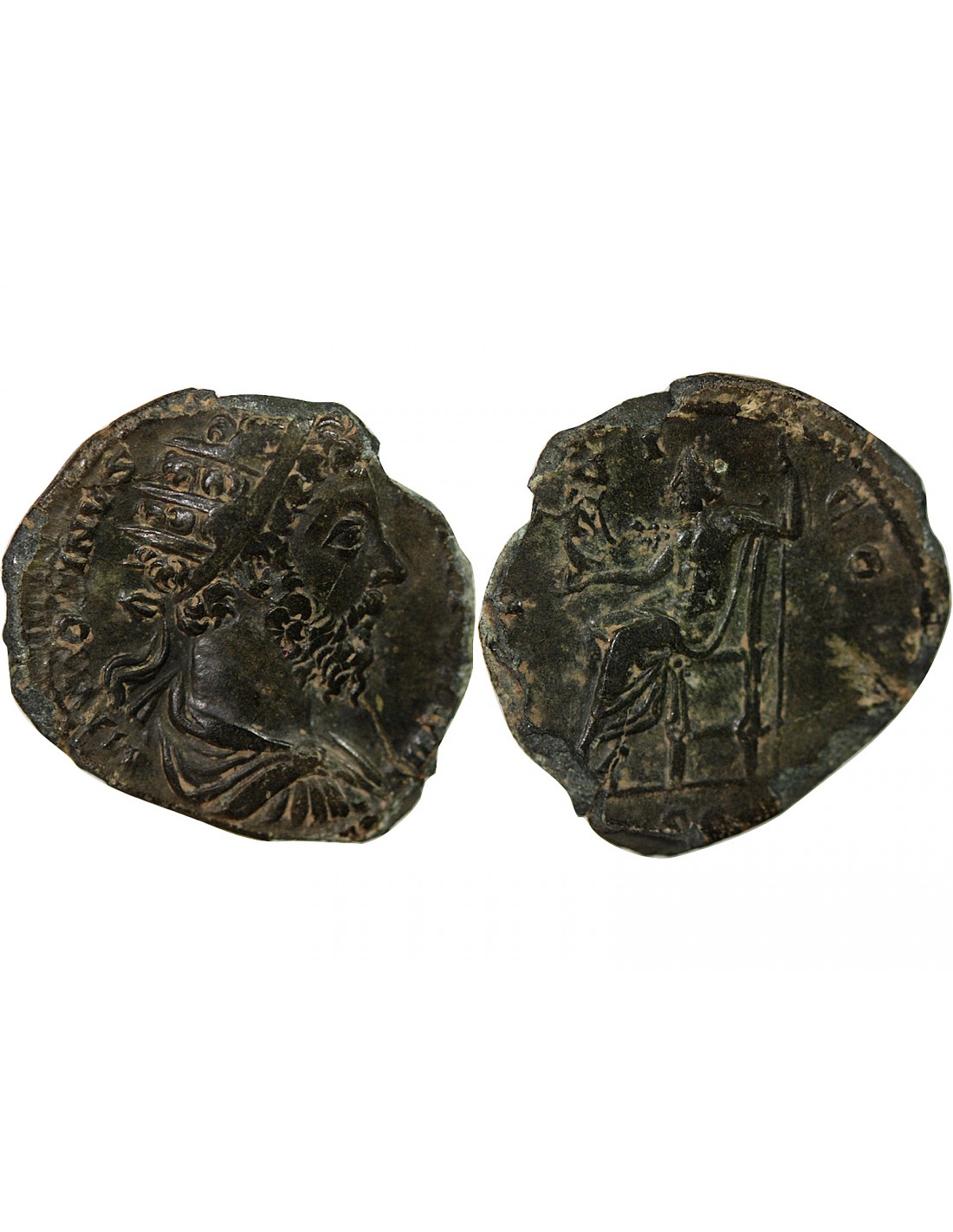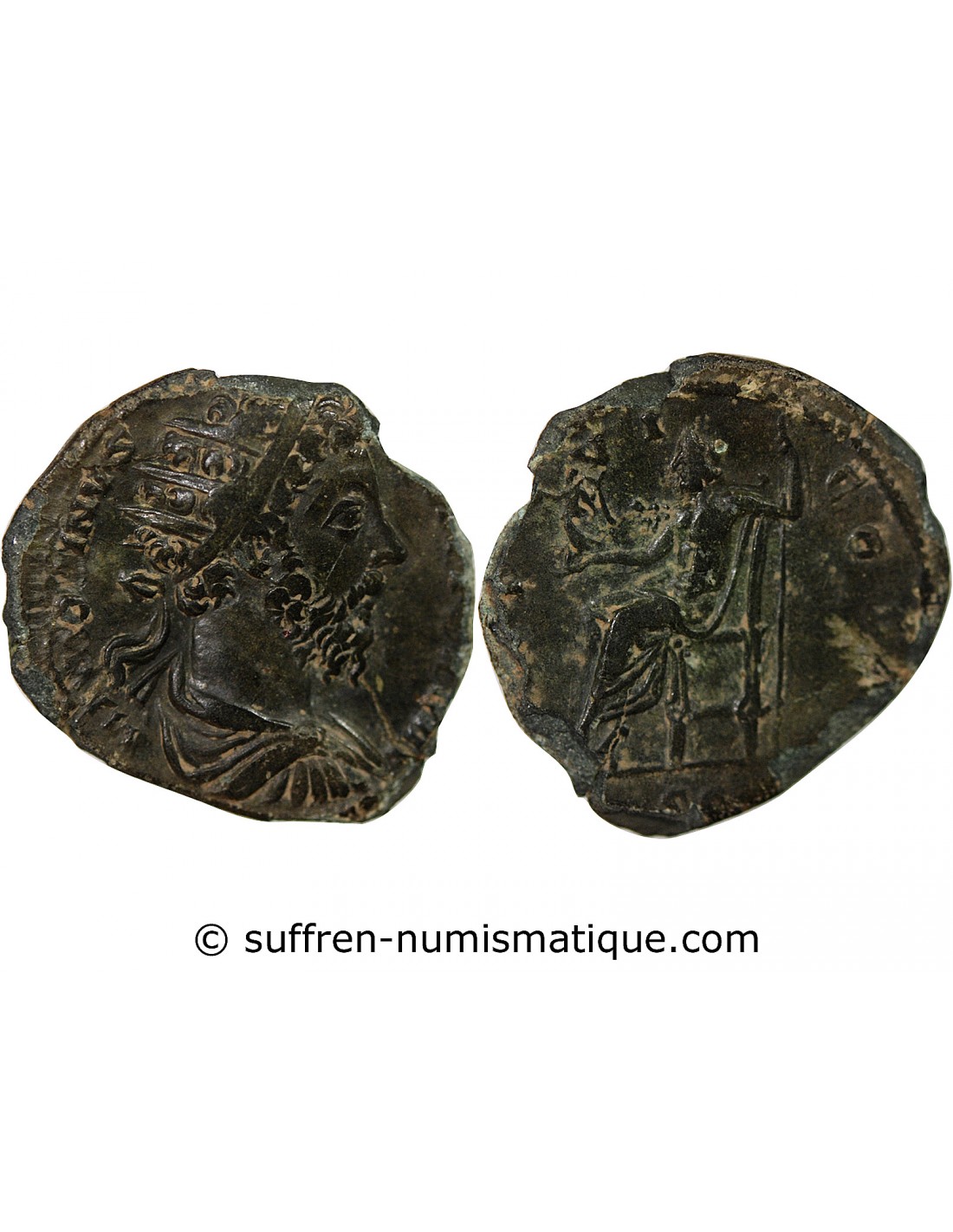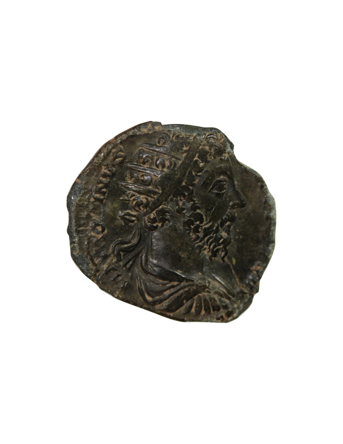 Avers : M ANTONINVS [AVG TR P X]XVIII / Buste radié, drapé et cuirassé de l'Empereur vu de trois quarts arrière à droite