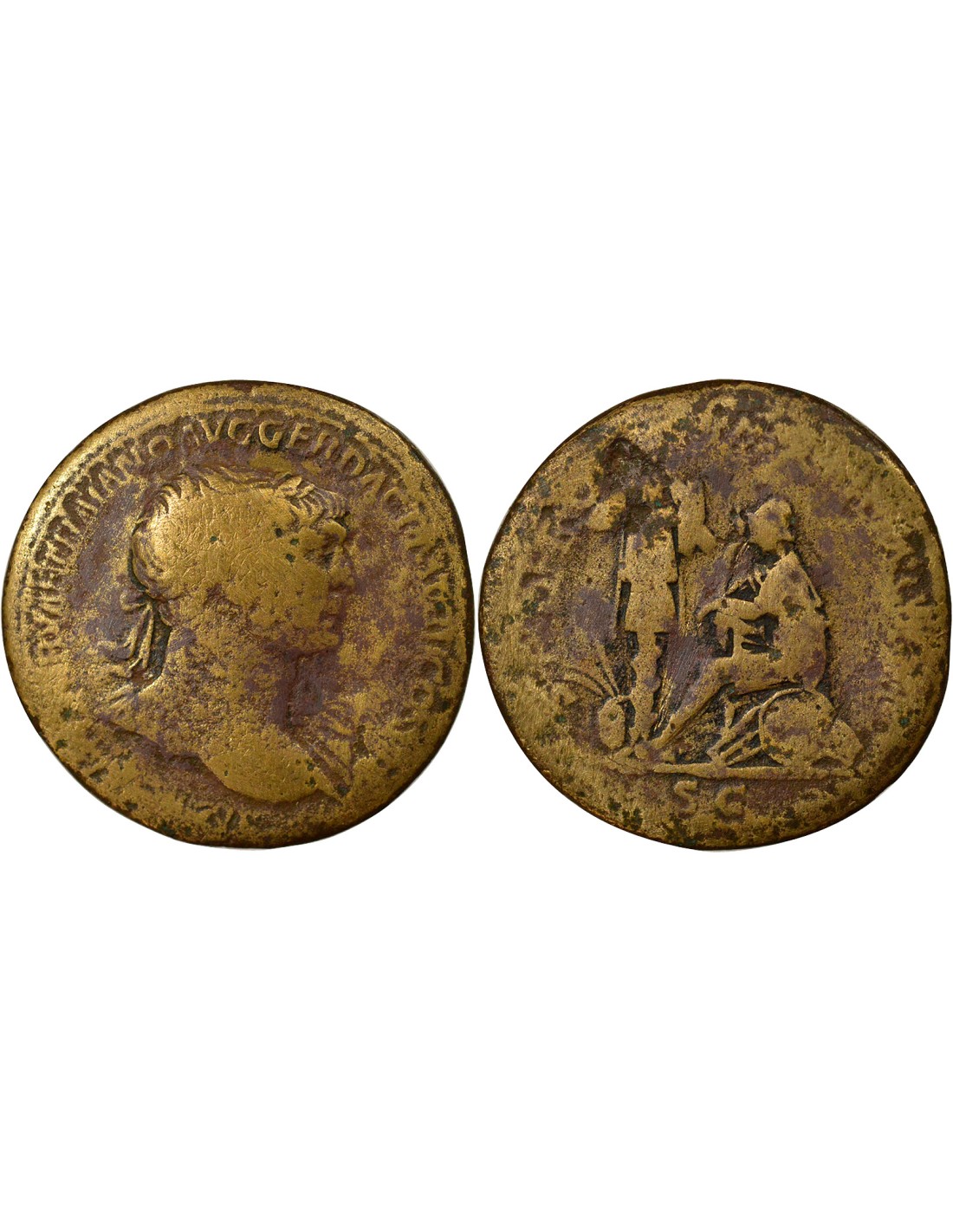 Avers : IMP CAES NERVAE TRAIANO AVG GER DAC P M TR P COS V P P