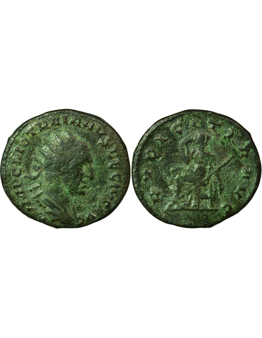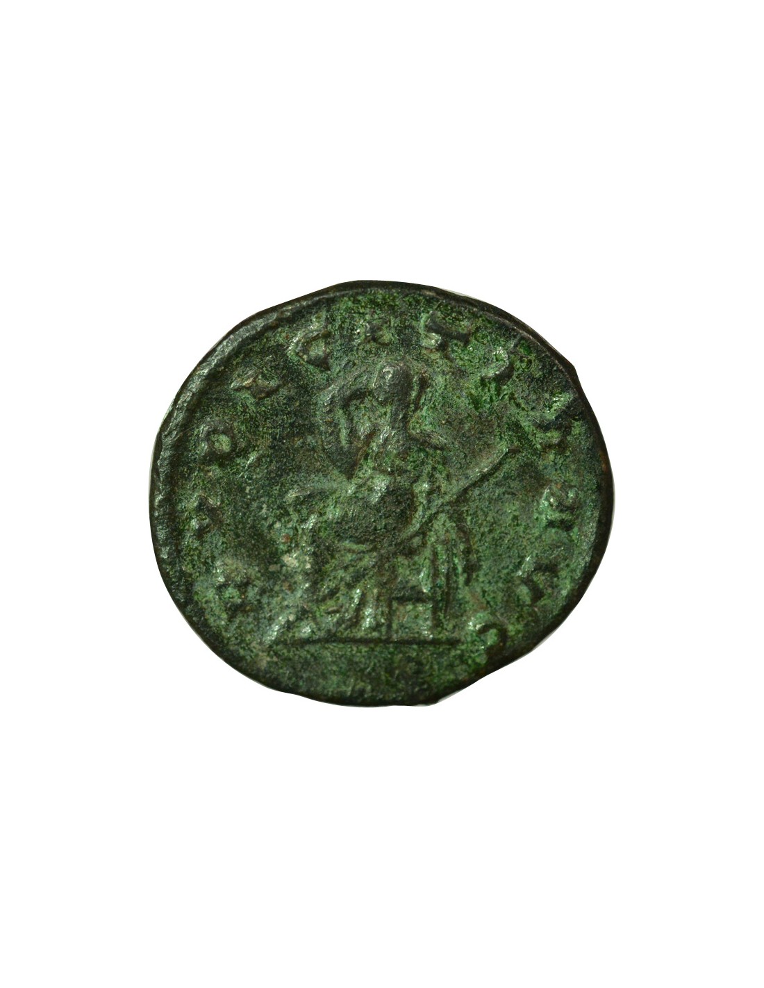 Le revers de la pièce représente Pudicitia assise, personnification de la pudeur et de la chasteté. Ce type iconographique, fréquent sur les monnaies romaines, renvoie à des valeurs morales traditionnelles, sans nécessairement refléter une politique spécifique propre au règne de Trajan Dèce.