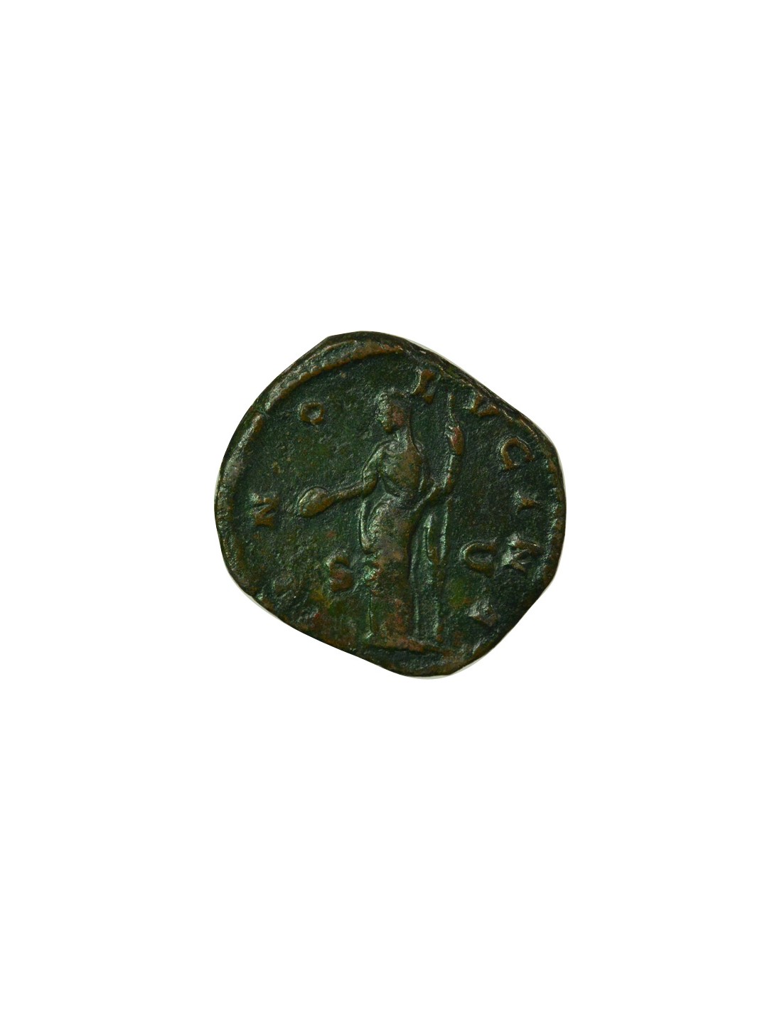 La symbolique de Juno Lucina sur cet as exprime l’idée de protection des naissances et de fécondité, ainsi que l’espoir officiel d’assurer la continuité dynastique des Antonins par la naissance d’un héritier. Cette iconographie s’inscrit dans une rhétorique impériale valorisant la stabilité de la famille régnante et la prospérité de l’État.