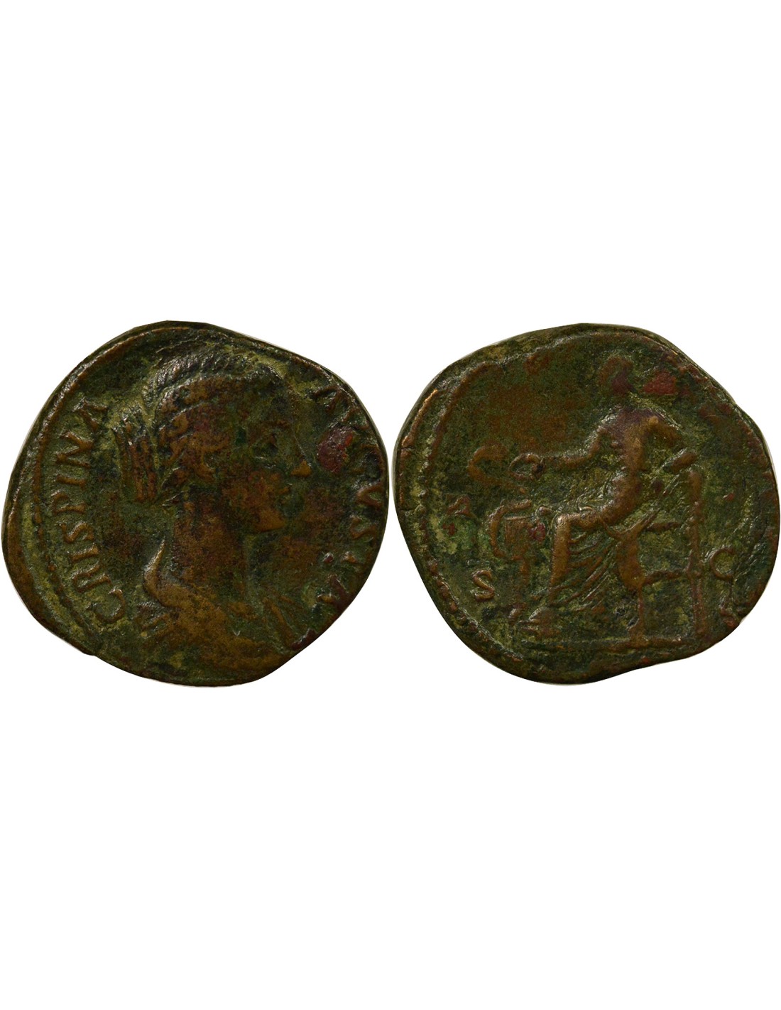 L’émission de cette monnaie s’inscrit dans une période charnière de l’Empire romain, marquée par la transition entre le règne de Marc Aurèle et celui de Commode. Bruttia Crispina, issue de l’aristocratie sénatoriale, épouse Commode en 178 dans le cadre d’une alliance dynastique visant à renforcer la légitimité du nouvel héritier impérial. Cette période correspond à une phase de transition politique au sein de la dynastie antonine, dans un contexte où l’Empire est confronté à des tensions militaires persistantes sur certaines frontières, notamment dans les régions danubiennes.