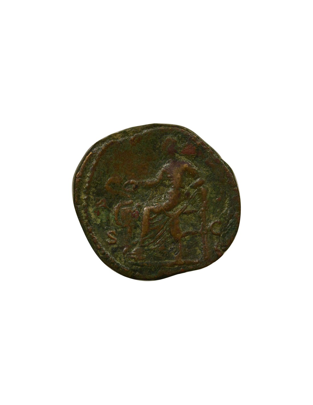 La représentation de Salus au revers renvoie aux préoccupations relatives à la stabilité et à la continuité du pouvoir impérial, ainsi qu’à la santé collective de l’État romain. Associée au serpent, symbole de régénération et de vitalité, cette iconographie exprime l’idée de renouvellement et de protection, inscrite dans un cadre religieux et idéologique propre à la propagande impériale. Elle ne constitue pas une observation directe de réalités sanitaires, mais participe à la construction d’un discours visant à associer la dynastie à la prospérité et à la protection divine.