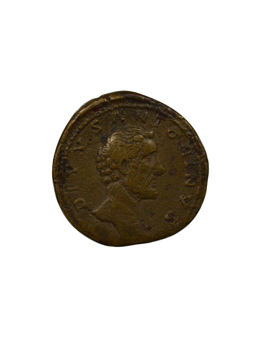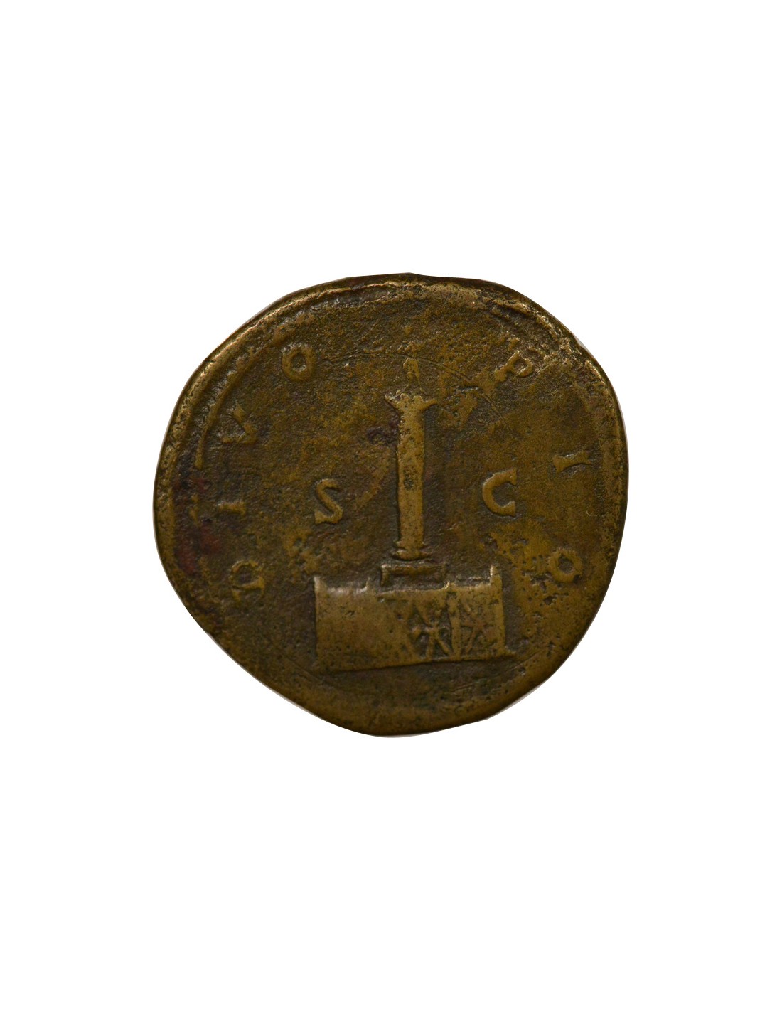 Le revers de cette monnaie illustre la colonne antonine, monument commémoratif érigé en l’honneur de Antonin le Pieux, surmontée d’une statue représentant l’empereur divinisé. Cette émission s’inscrit dans le processus de consécration, par lequel le Sénat romain accorde le statut divin à un empereur après sa mort. Elle est liée au début du règne conjoint de Marc Aurèle et de Lucius Verus en 161, et participe à la mise en valeur de la continuité dynastique antonine. En magnifiant la figure du prédécesseur, les deux co-empereurs renforcent indirectement leur propre légitimité dans un contexte où l’Empire devra faire face à des tensions militaires croissantes, notamment en Orient contre les Parthes et sur les frontières danubiennes.
