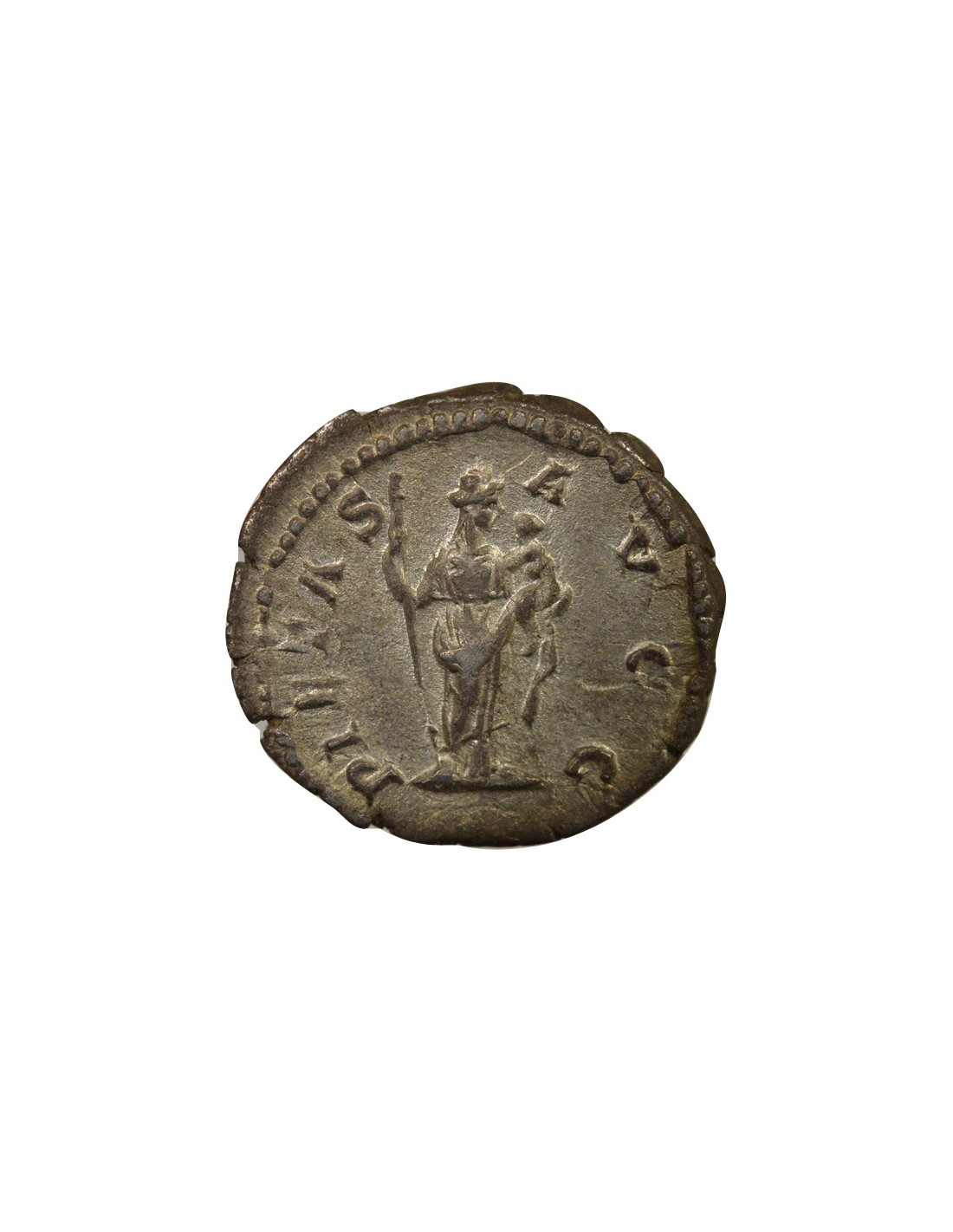 La symbolique du revers, associée à la Pietas, s’inscrit dans un registre idéologique classique du monnayage romain, visant à associer la figure impériale féminine aux valeurs traditionnelles de dévotion religieuse, de fidélité familiale et de continuité dynastique. Elle participe ainsi à la construction d’une image officielle de stabilité et de cohésion du pouvoir.
