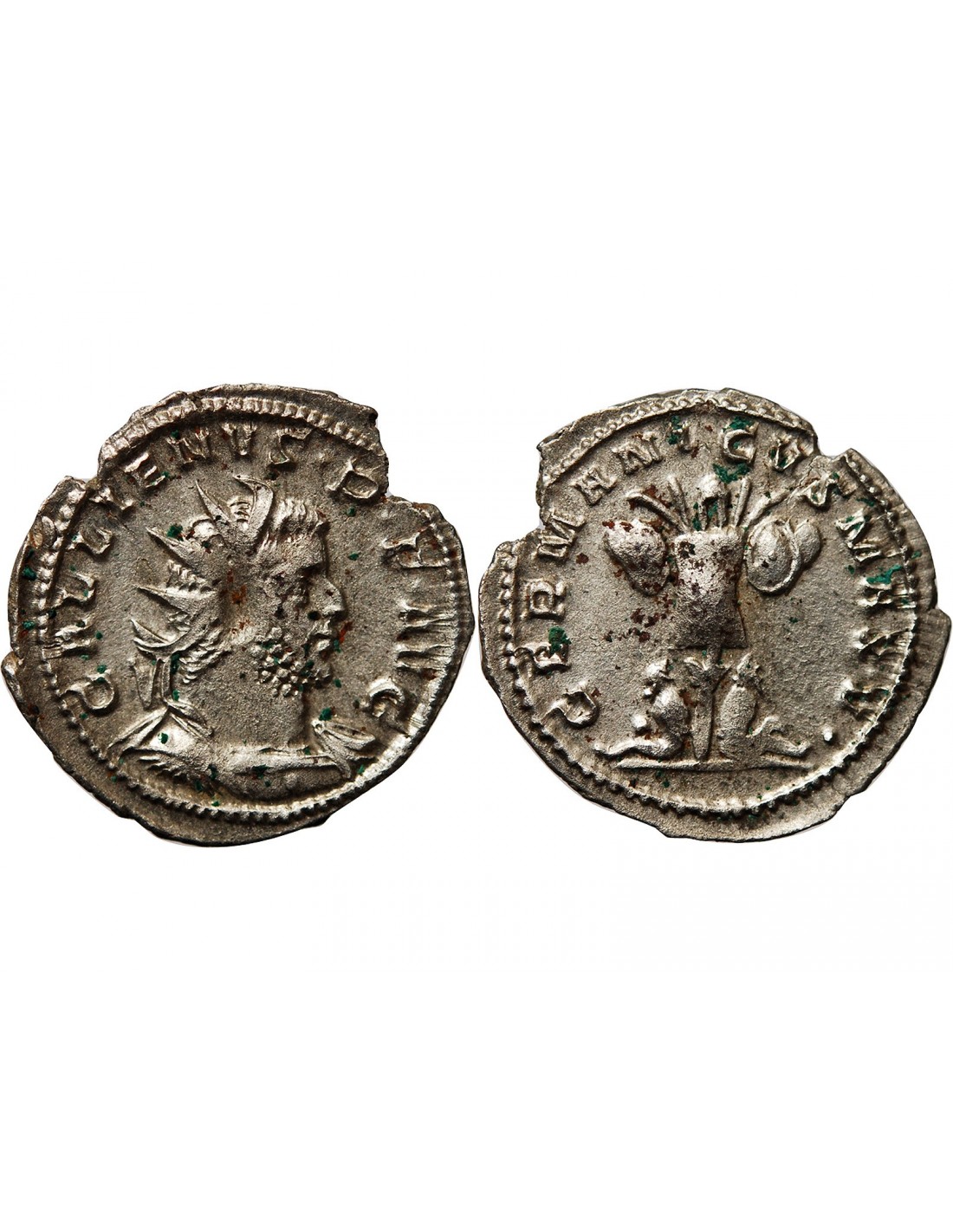 Gallien est empereur romain. Jusqu'en 260 il partage le pouvoir avec son père Valérien. Il est le dernier membre de l'ordre sénatorial à devenir empereur. Après lui ses successeurs ne sont plus que des militaires.
