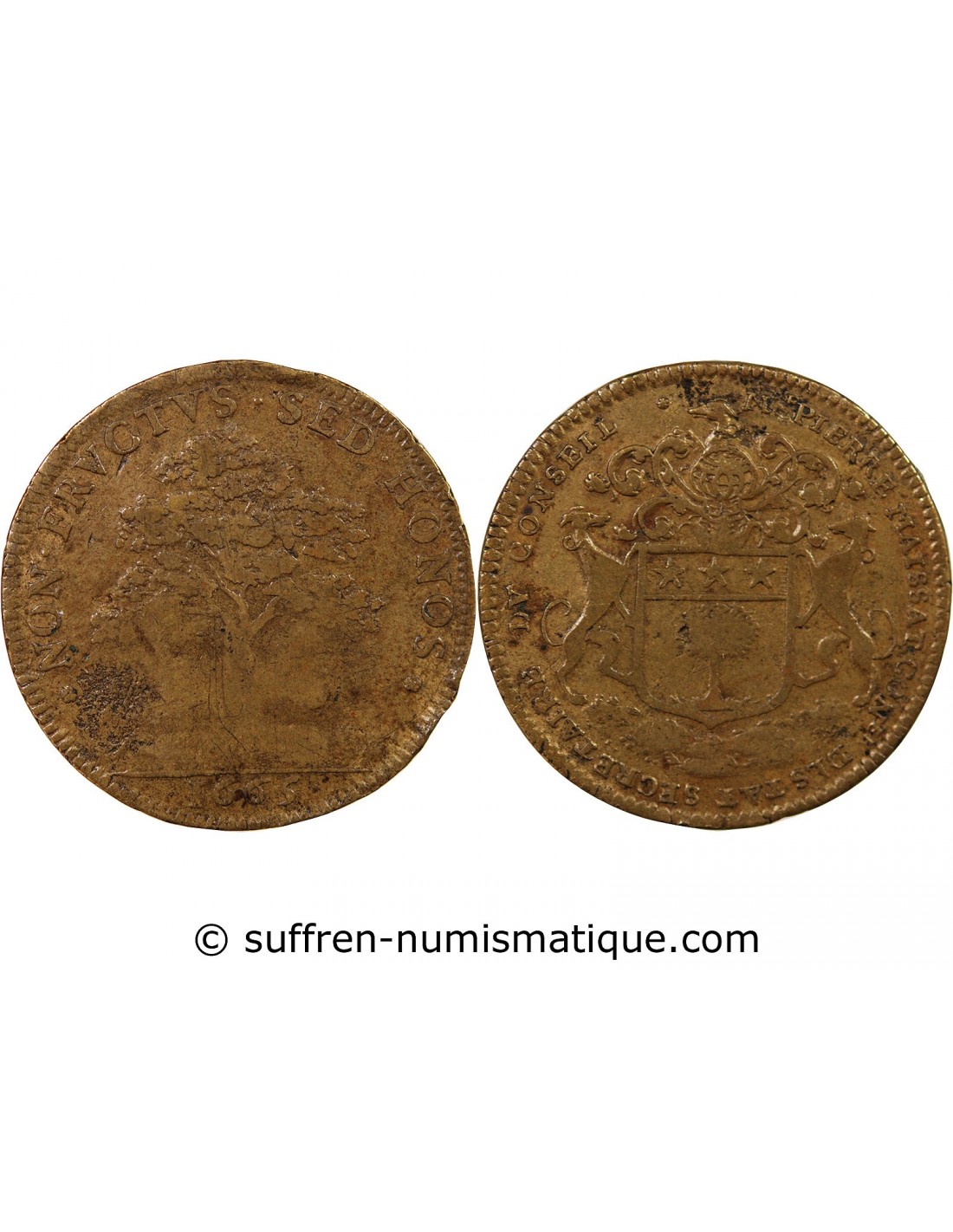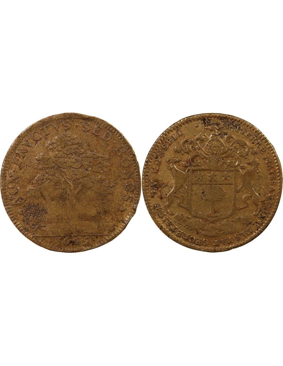SEIGNEURIE DE LEVEVILLE, PIERRE MAISSAT – JETON LAITON 1665