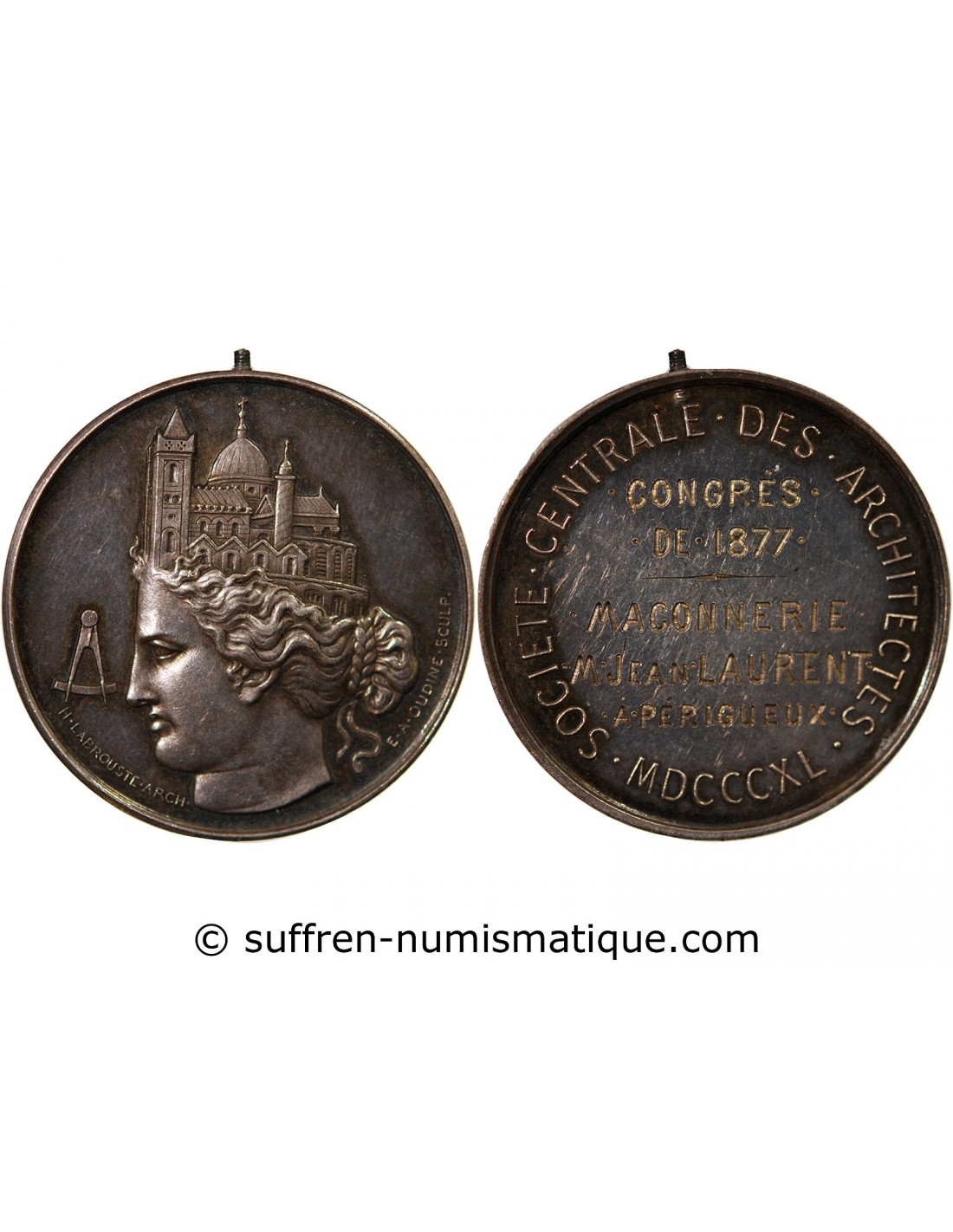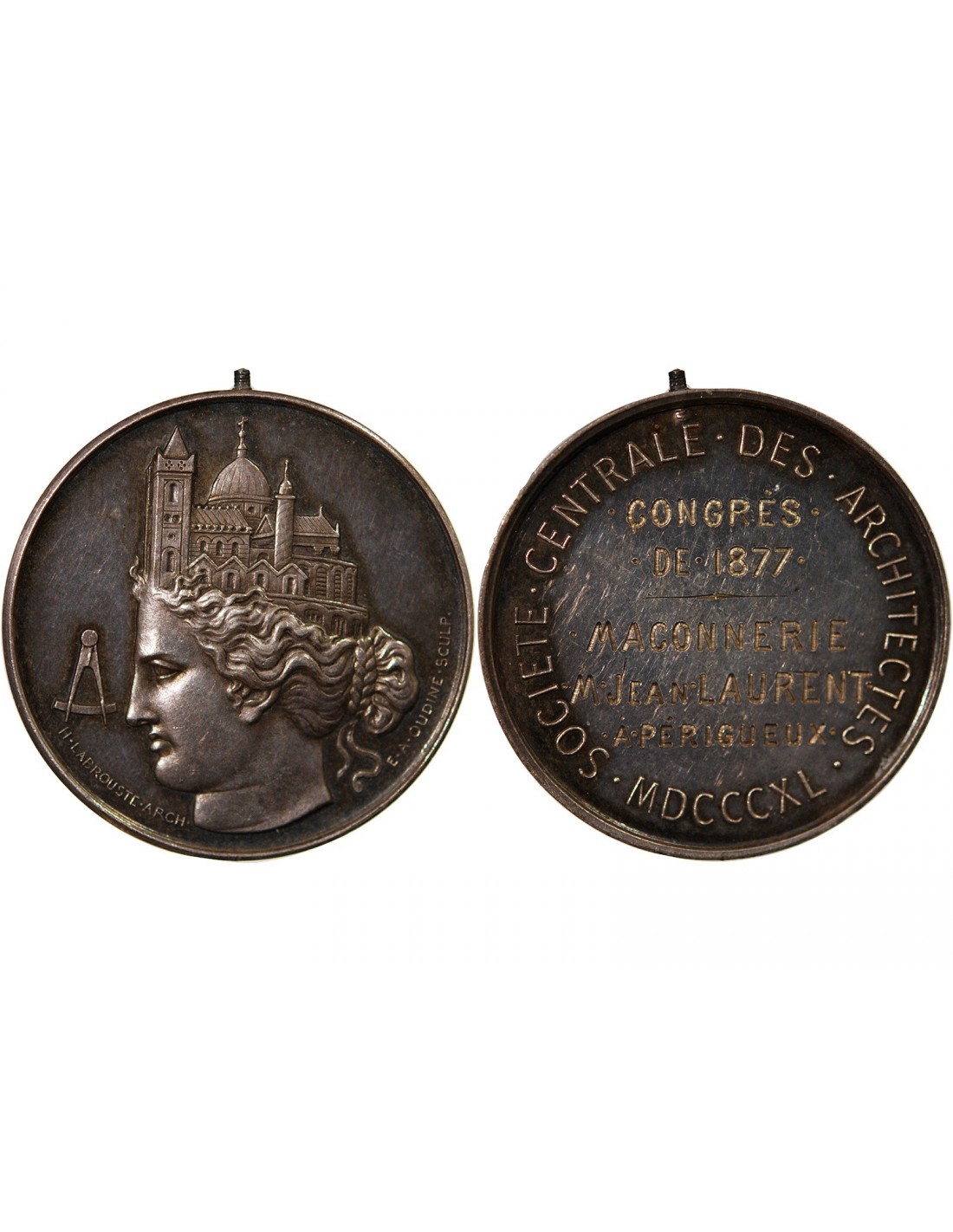 SOCIETE CENTRALE DES ARCHITECTES, CONGRES DE 1877 - JETON ARGENT