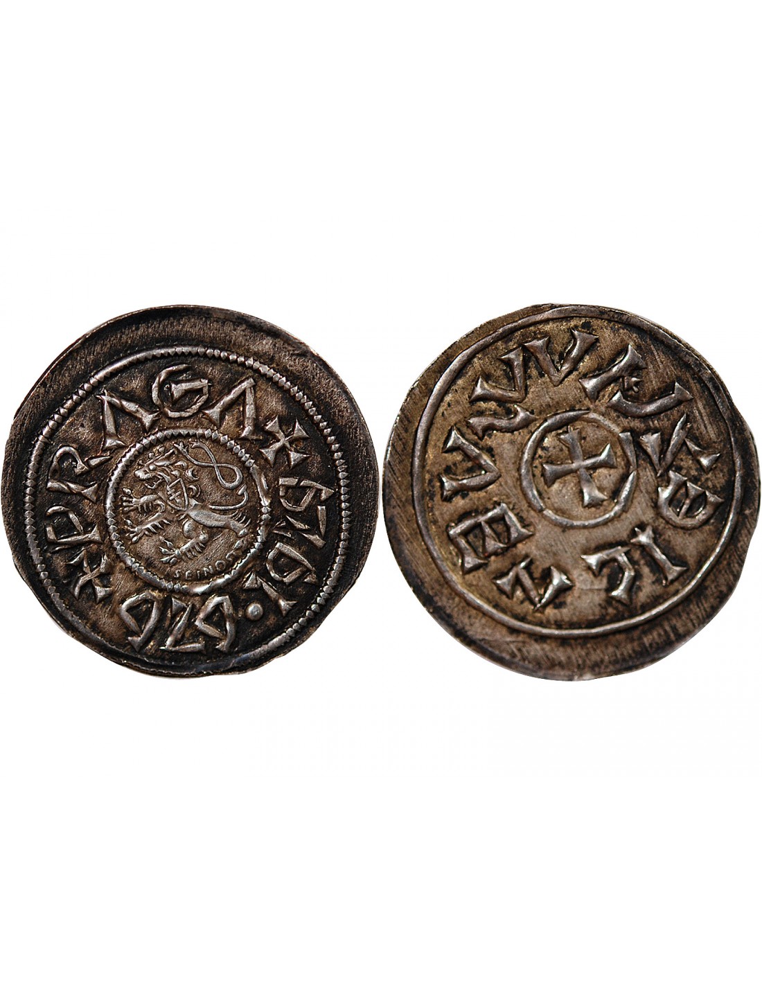 Émise en Tchécoslovaquie en 1929 par le Graveur Seinost pour la commémoration du millénium de Wenceslaus et de la christianisation de la Bohème. Ce jeton en argent imite un denier du XIème siècle.