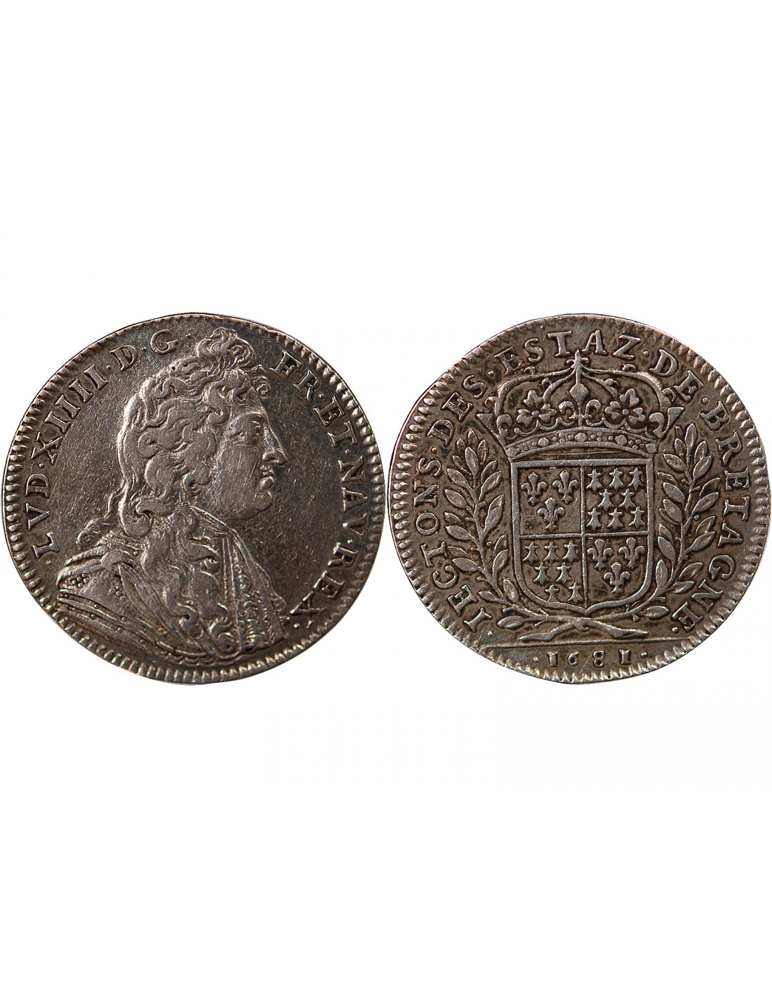 ETATS DE BRETAGNE, LOUIS XIV – JETON ARGENT 1681 NANTES Daniel 23