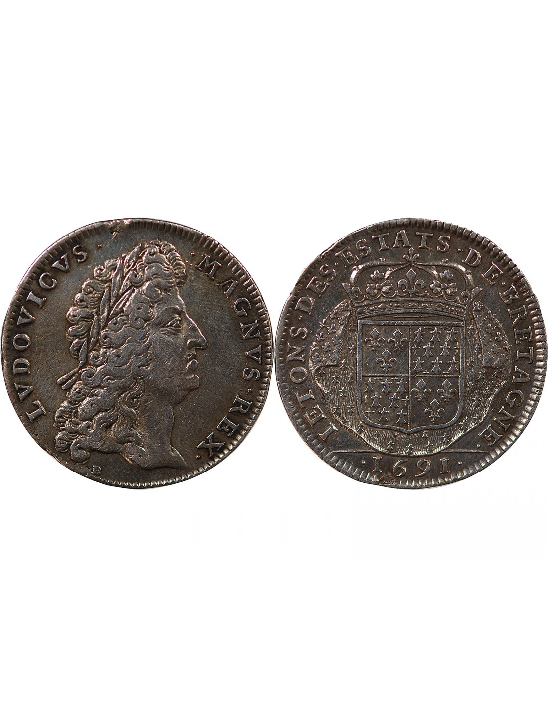 ETATS DE BRETAGNE, LOUIS XIV – JETON ARGENT 1691 VANNES Daniel 40