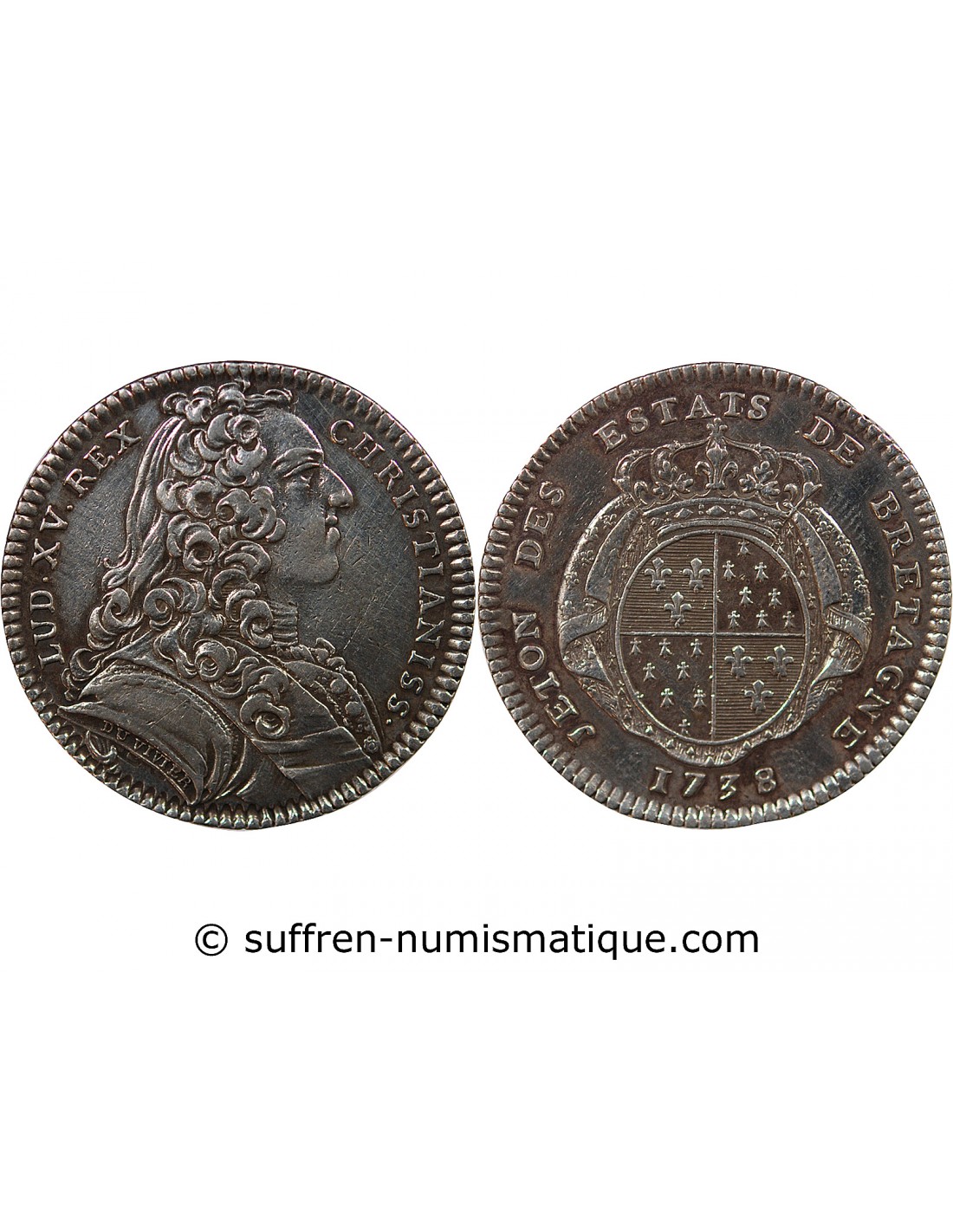 ETATS DE BRETAGNE, LOUIS XV – JETON ARGENT 1738 RENNES Daniel 90