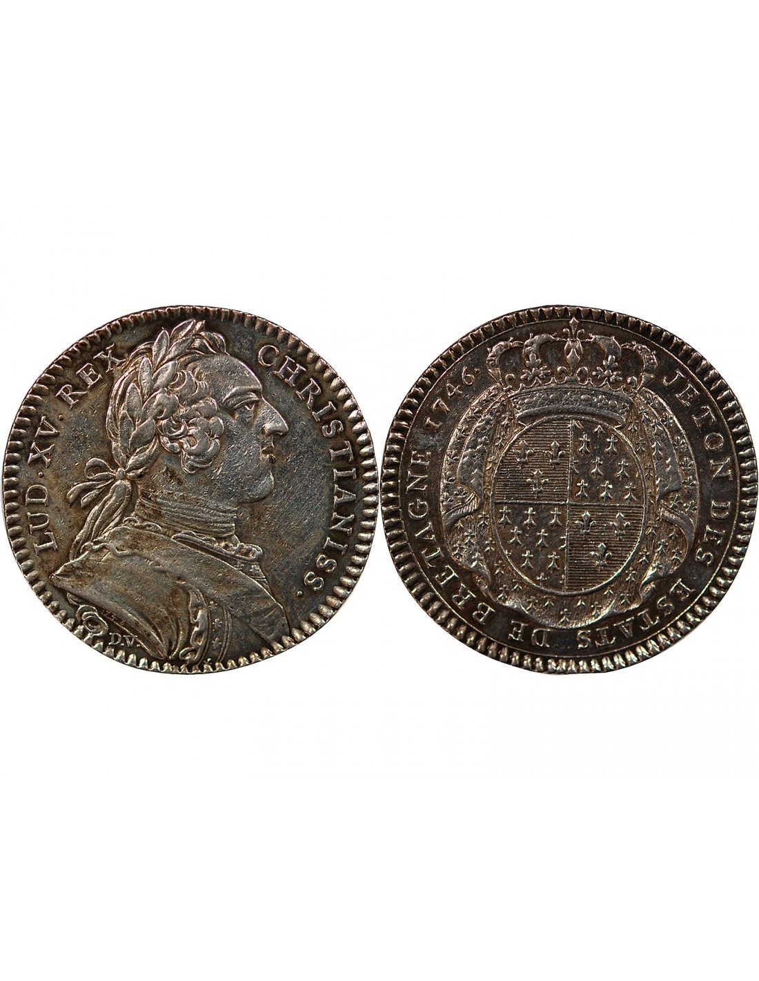 ETATS DE BRETAGNE, LOUIS XV – JETON ARGENT 1746 RENNES Daniel 97