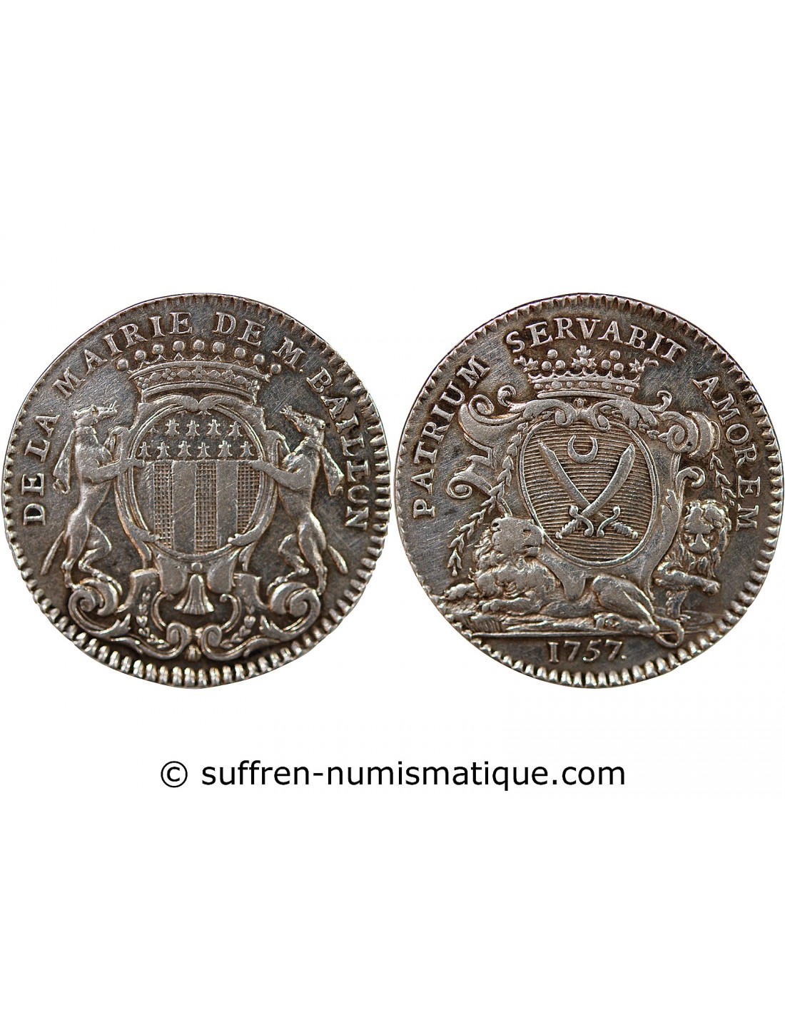 MAIRE DE RENNES, JEAN BAILLON - JETON ARGENT 1757