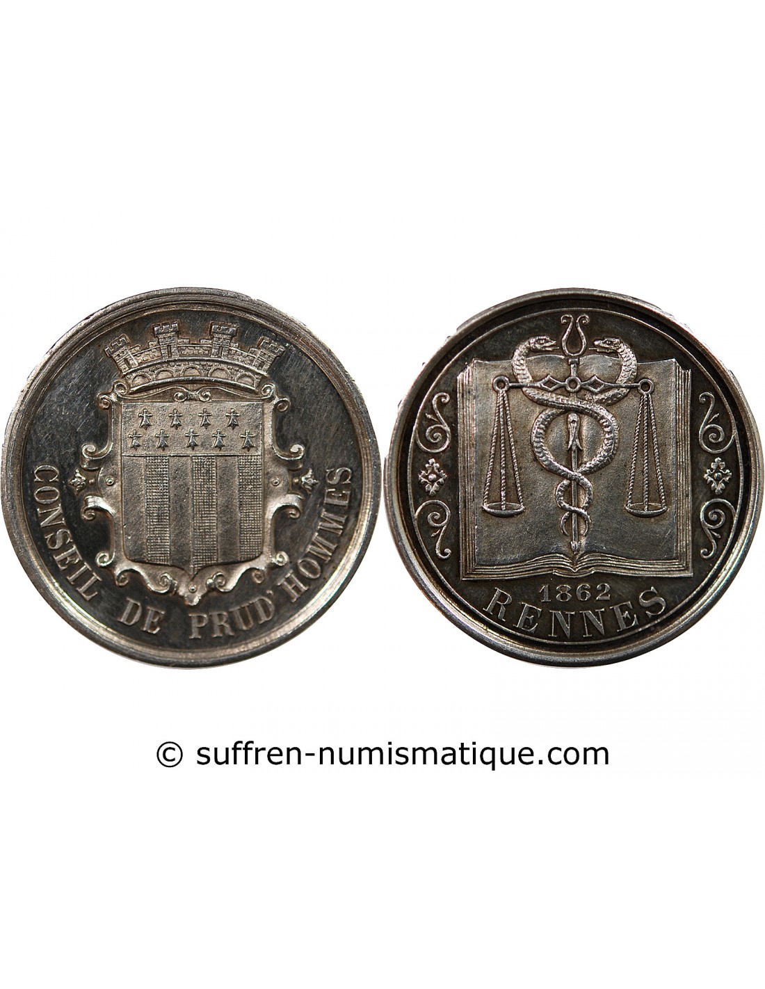 CONSEIL DE PRUD'HOMMES DE RENNES - JETON ARGENT, 1862 poinçon Abeille (après 1860-1879)