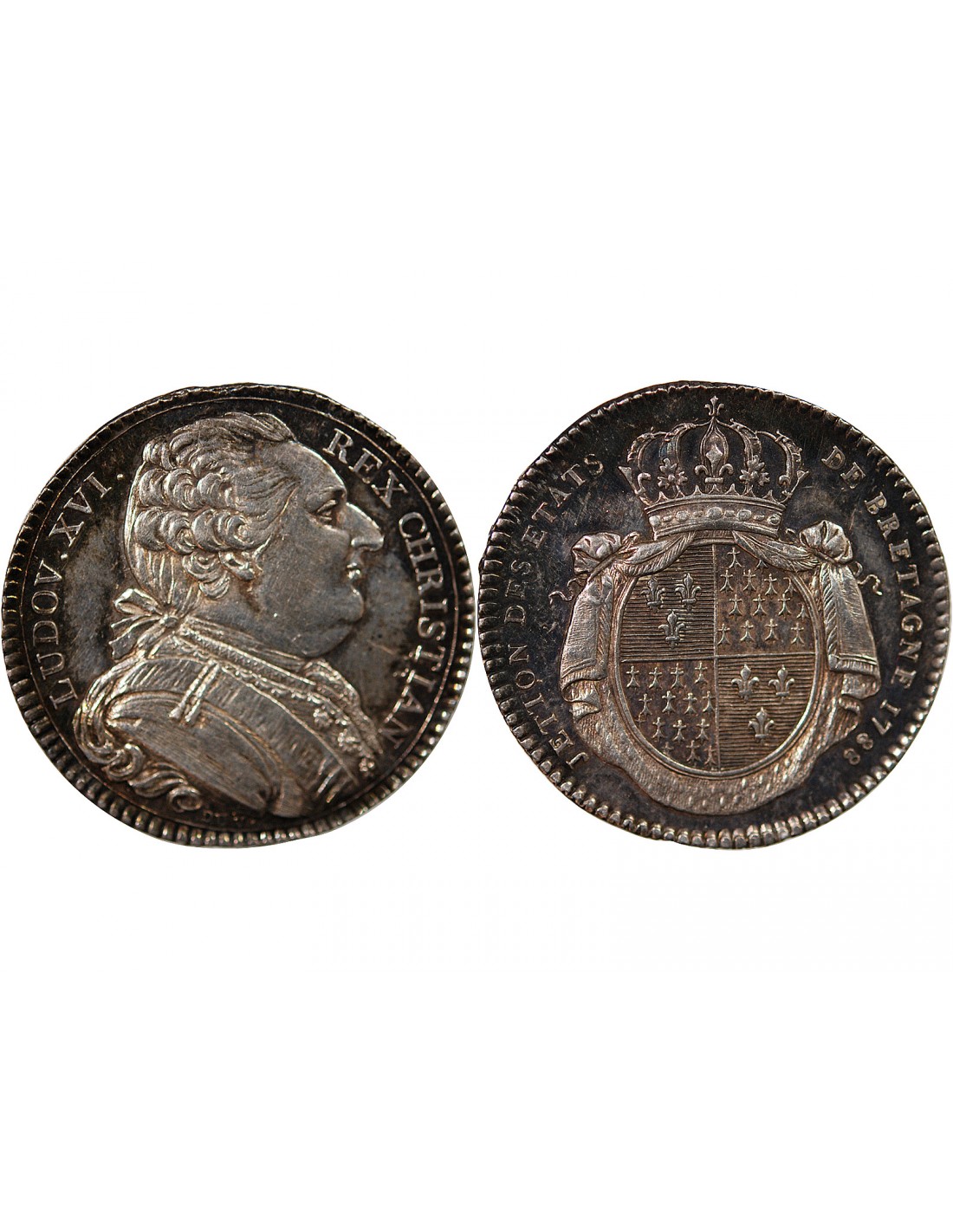 ETATS DE BRETAGNE, LOUIS XVI – JETON ARGENT 1788 RENNES Daniel 139