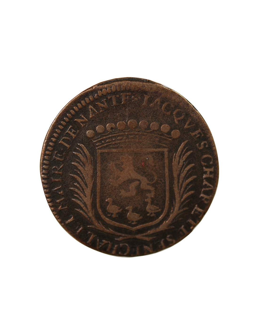 La Mairie de Nantes fut installée en 1565 après avoir été créée par François II en 1560, avec le droit d'élire ses échevins. Les premiers jetons ne portent pas le nom du maire, ce sont des jetons d'échevinage.  Les armoiries apparaissent en 1637.
