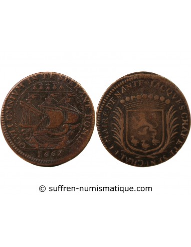 MAIRE DE NANTES - JACQUES CHARETTE, SIEUR DE MONTBERT JETON CUIVRE 1668