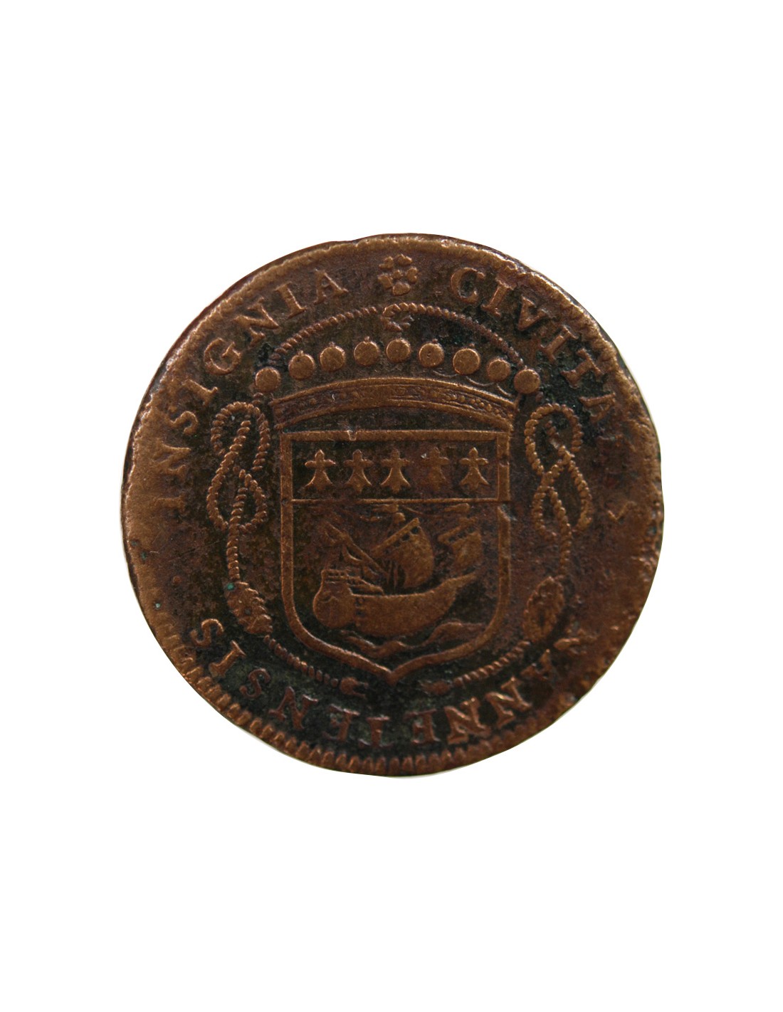 La Mairie de Nantes fut installée en 1565 après avoir été créée par François II en 1560, avec le droit d'élire ses échevins. Les premiers jetons ne portent pas le nom du maire, ce sont des jetons d'échevinage.  Les armoiries apparaissent en 1637.