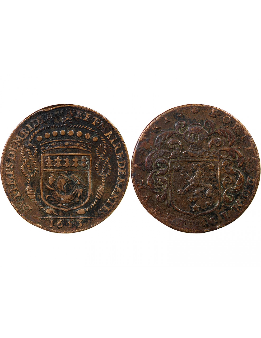 La Mairie de Nantes fut installée en 1565 après avoir été créée par François II en 1560, avec le droit d'élire ses échevins. Les premiers jetons ne portent pas le nom du maire, ce sont des jetons d'échevinage.  Les armoiries apparaissent en 1637.