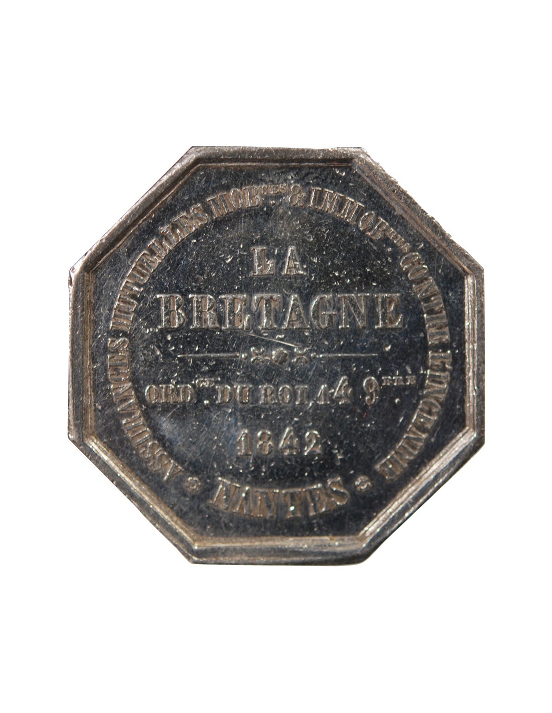 ASSURANCES MUTUELLES CONTRE L'INCENDIE, LA BRETAGNE - JETON ARGENT 1842 - NANTES POINCON MAIN (1845-1860)