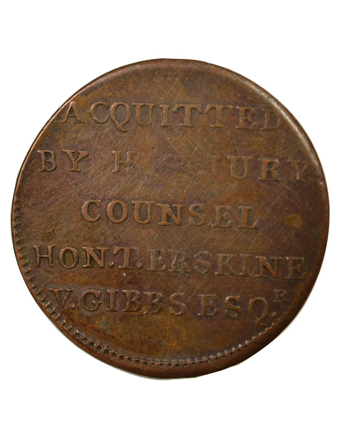 Avers : ACQUITTED / BY HIS JURY / COUNSEL / HON. T. ERSKINE / V. GIBBS ESQ.R